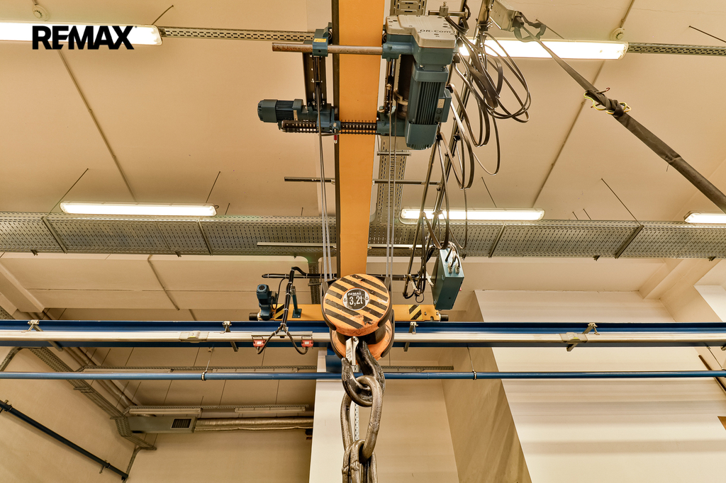 ▪️Manipulační technika: Mostový jeřáb o nosnosti 3,2 t + vykládací posuvná kladka (3,2 t). Podjezdná výška pod jeřábem je 3,2 m