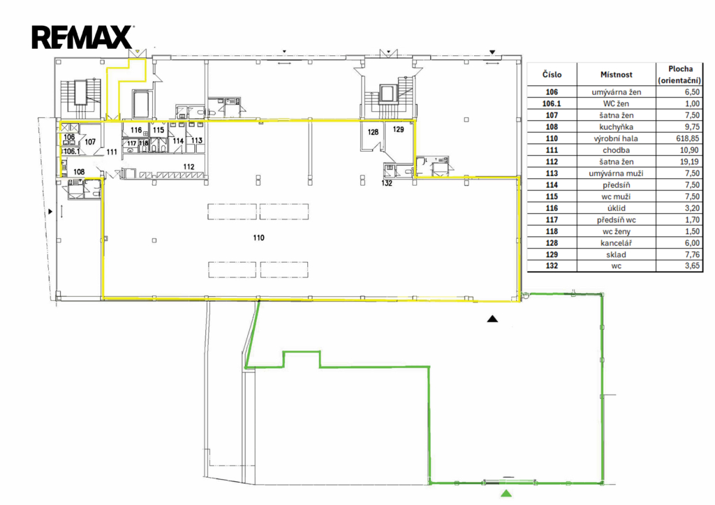 ▪️Variabilita: Prostory je možné pronajmout s venkovní plochou i bez ní, přesně podle vašich aktuálních potřeb. Venkovní plochu můžete vidět na půdorysu označenou zelenou barvou. Prostory jsou vhodné pro manipulaci, parkování a venkovní sklad