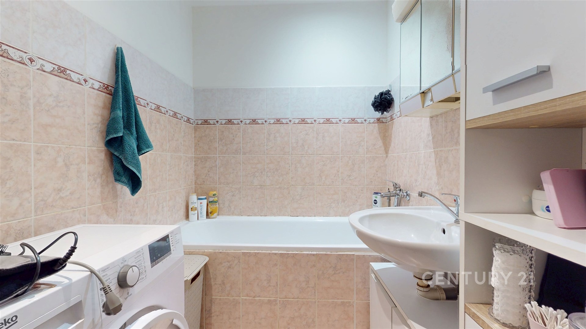 Koupelna je obložena moderními kachličkami a nachází se zde vana. Toaleta je oddělená.