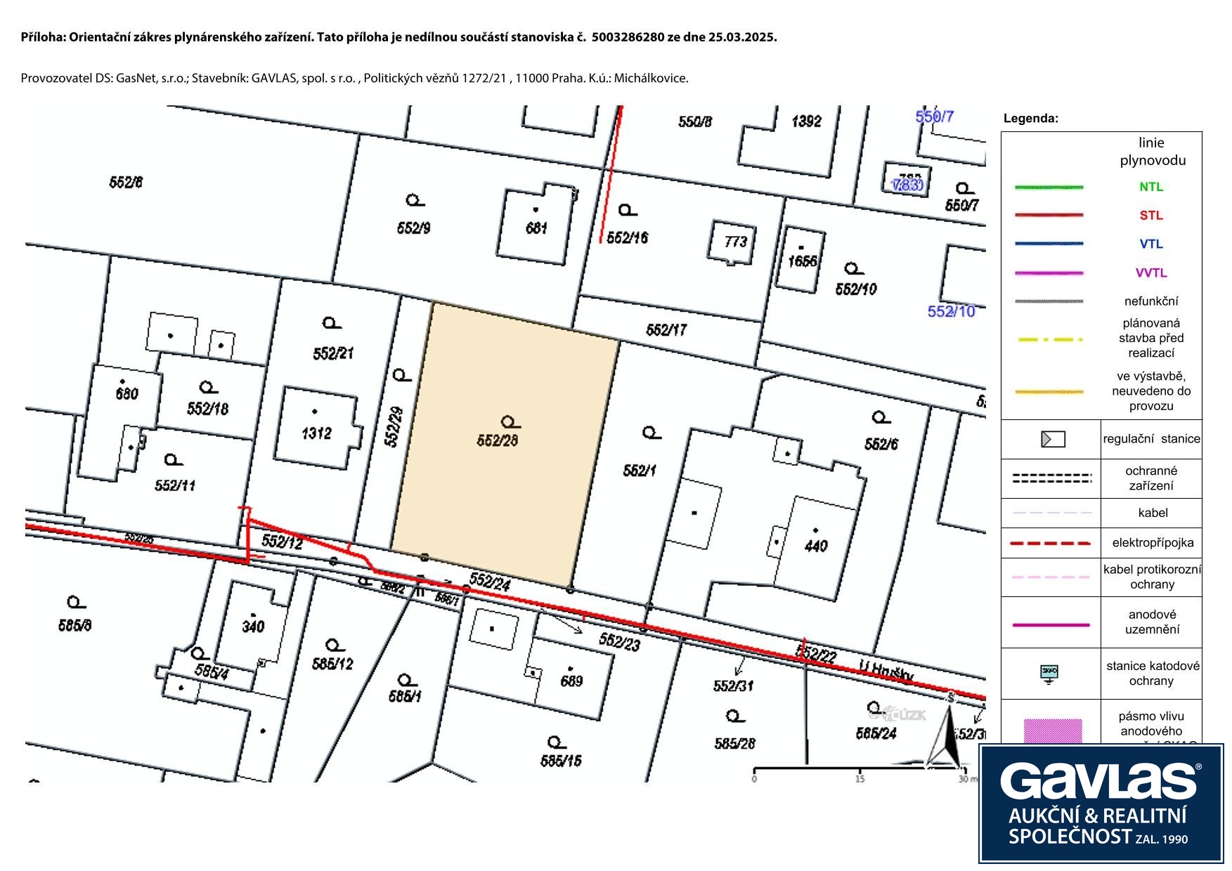 • Veřejný vodovod, plyn a elektřina vedou bezprostředně podél hranice pozemku v pozemku příjezdové komunikace. Kanalizace v ulici U Hrušky je v investičním plánu Statutárního města.