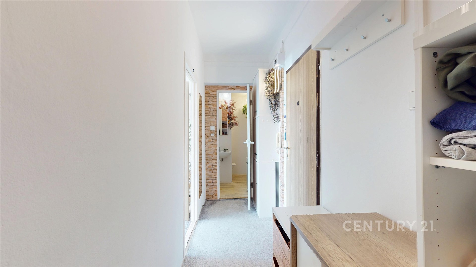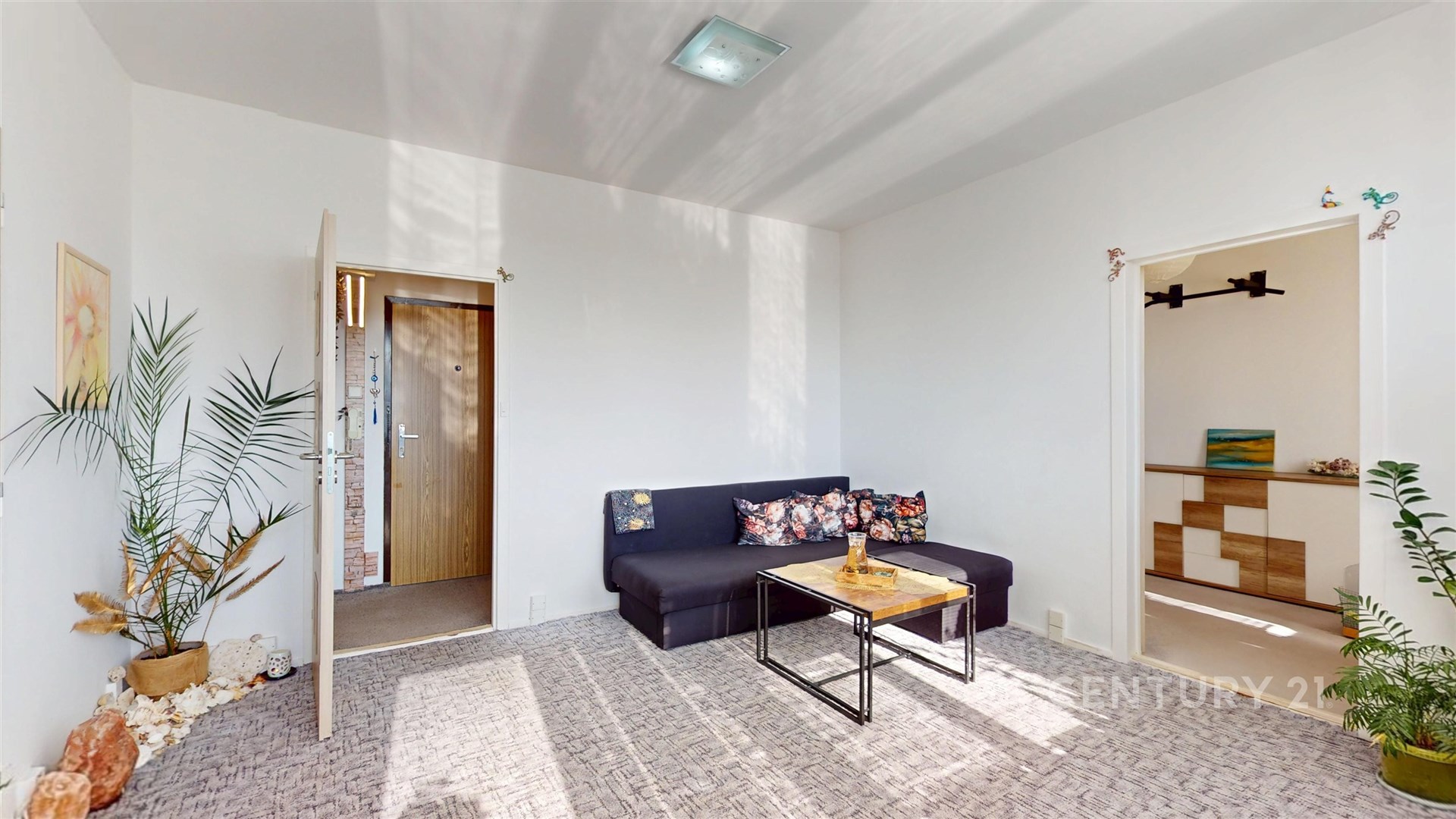 Celý byt je laděný do světlých, neutrálních tónů. Na podlaze je koberec, díky kterému si zachováte příjemný teplotní komfort i v zimě. Všechno působí čistě, klidně byt je připraven na nový začátek.