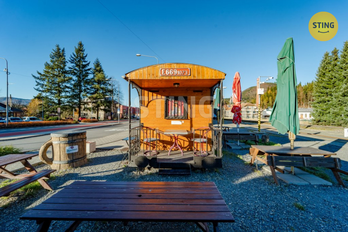 Vagonek není jen o voze jako takovém, součástí je i "čekárna" a venkovní posezení, kde hladoví pocestní mohou spočinout, právě s těmi dobrotami, které jim v bistru či kuchyni, která je součástí nádražní budovy, připravíte.