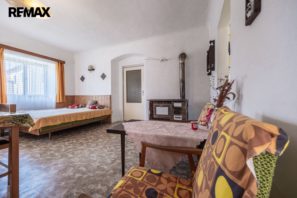 - kuchyň s jídelní částí a obývacím pokojem, vč. dobových krbových kamen
