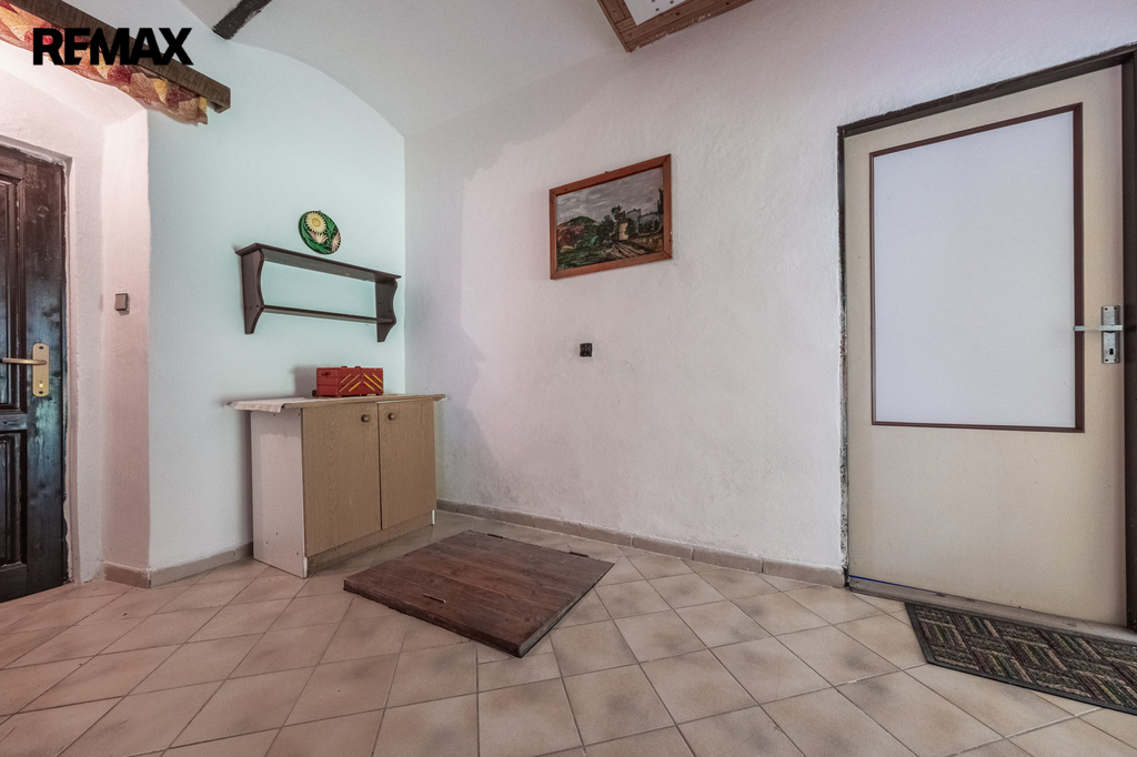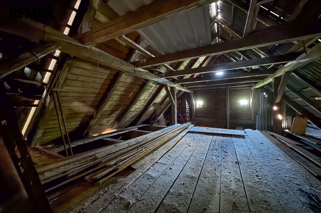 - výstup na půdní prostory, které se rozprostírají po celé ploše domu, aktuálně použitelné jako úložný prostor, s potenciálem vybudování dalších obytných místností