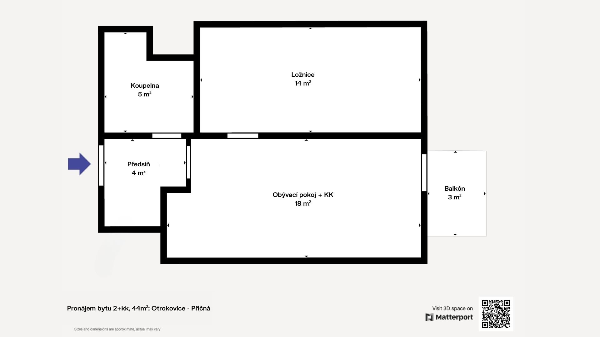 | Dispozice/podlahová plocha: | 2+kk/44 m² |
