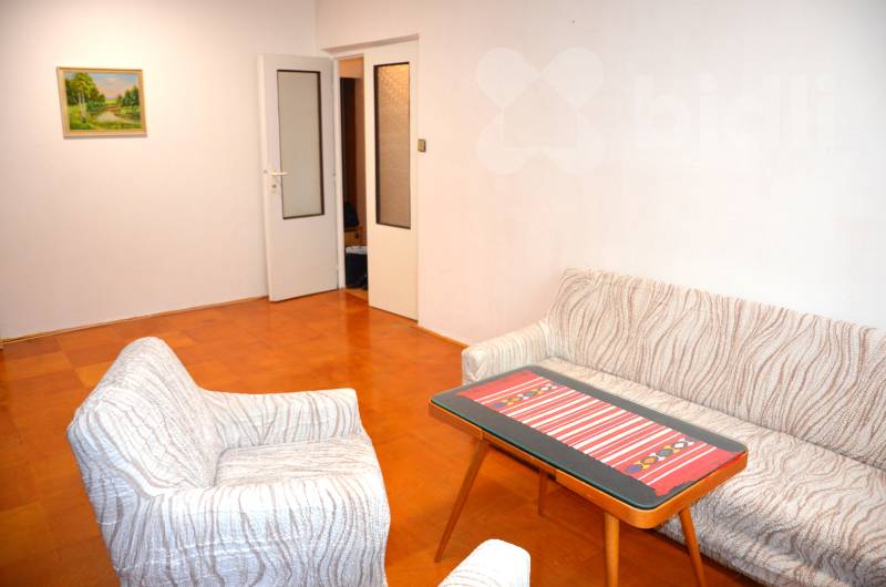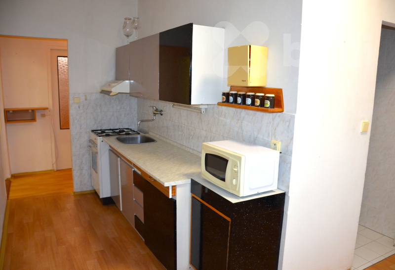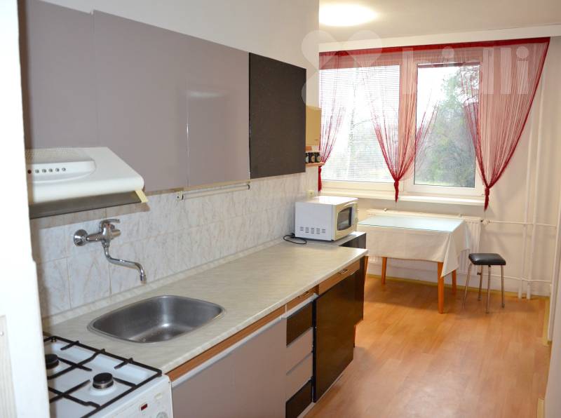 Kuchyňská linka je v zachovalém stavu a je možné ji dle domluvy upravit dle vlastních představ. Součástí kuchyně jsou spotřebiče - plynový sporák, elektrická trouba, mikrovlnná trouba a lednice. Obývací pokoj je vybaven televizí a obývací stěnou. Sedací soupravu dle fotek možno dodat. Další dva pokoje bez vybavení. V kuchyni je na podlaze lino, v ostatních pokojích parkety. Byt má balkon s krásným výhledem do přírody a plastová okna orientovaná na jihozápad.
