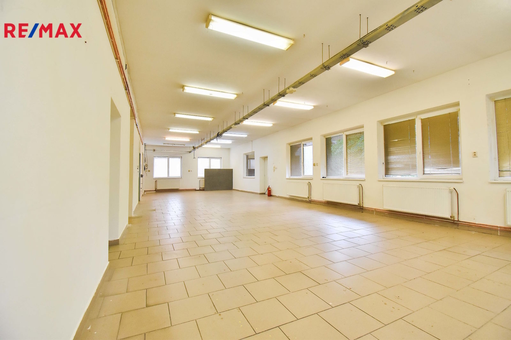 - dílna 97 m2, vhodná pro lehkou výrobu nebo skladování (např. e-shop). Centrální osvětlení, rozvody energií. Dále k dispozici kancelář, skladové prostory, sociální zařízení muži/ženy. Možnost drobných stavebních úprav dle potřeby nájemce.