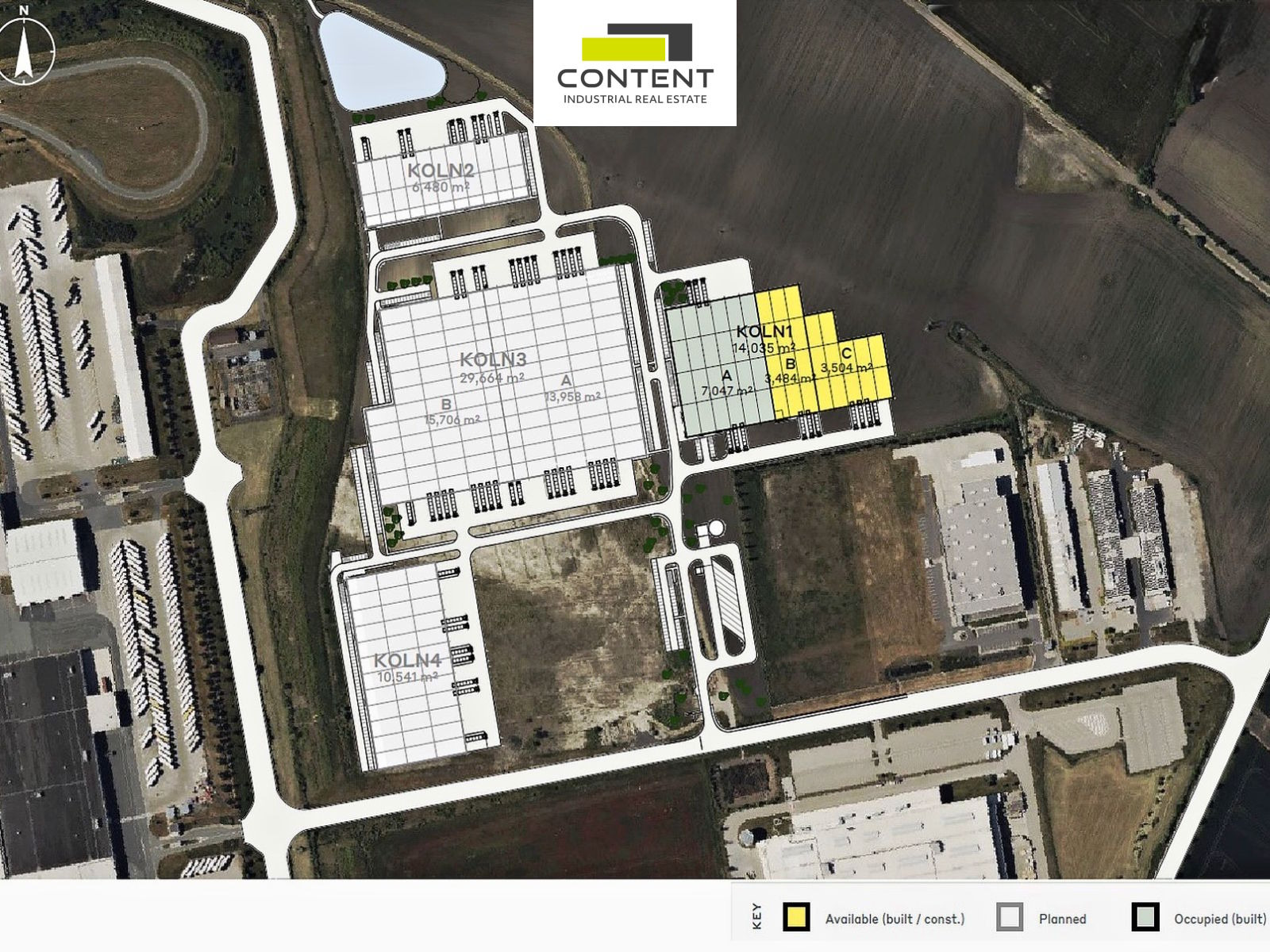- samostatné industriální prostory až 6988 m² (budova KOLN1)
