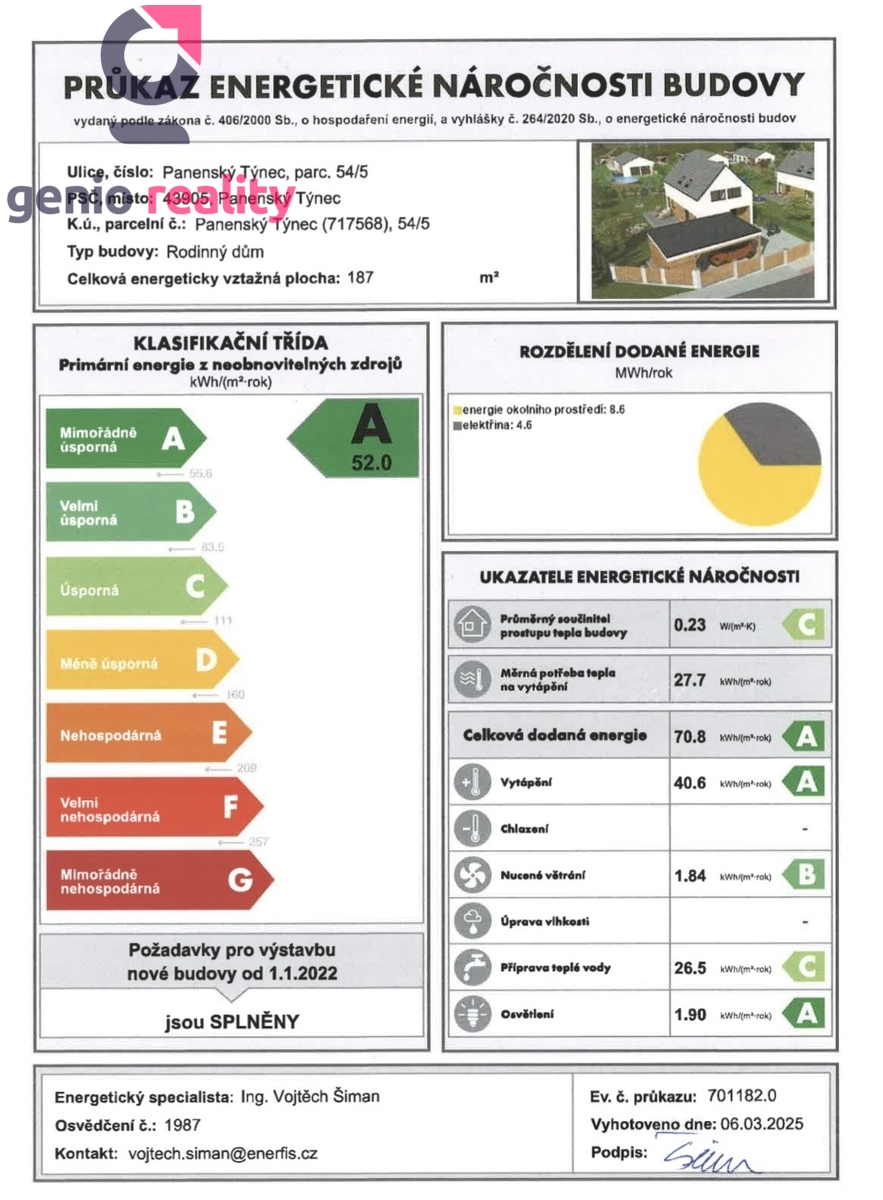 - Energetický ukazatel podle vyhlášky: č. 264/2020 Sb.