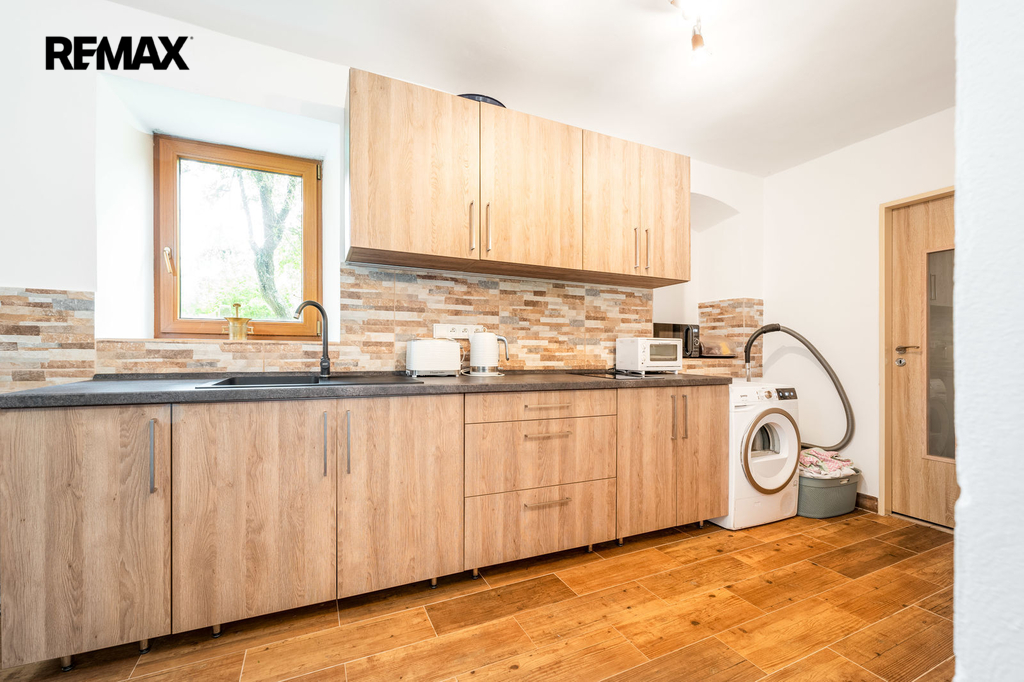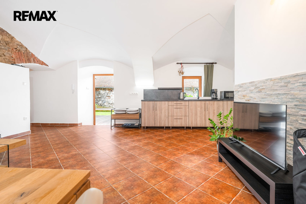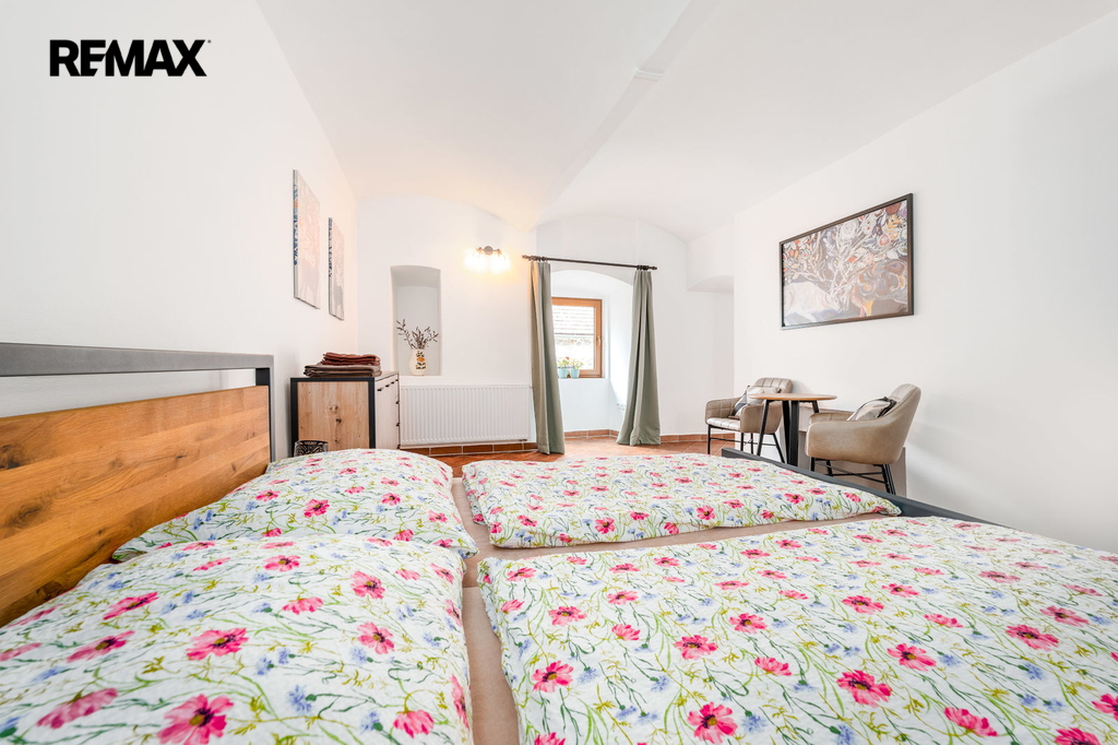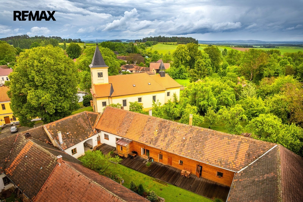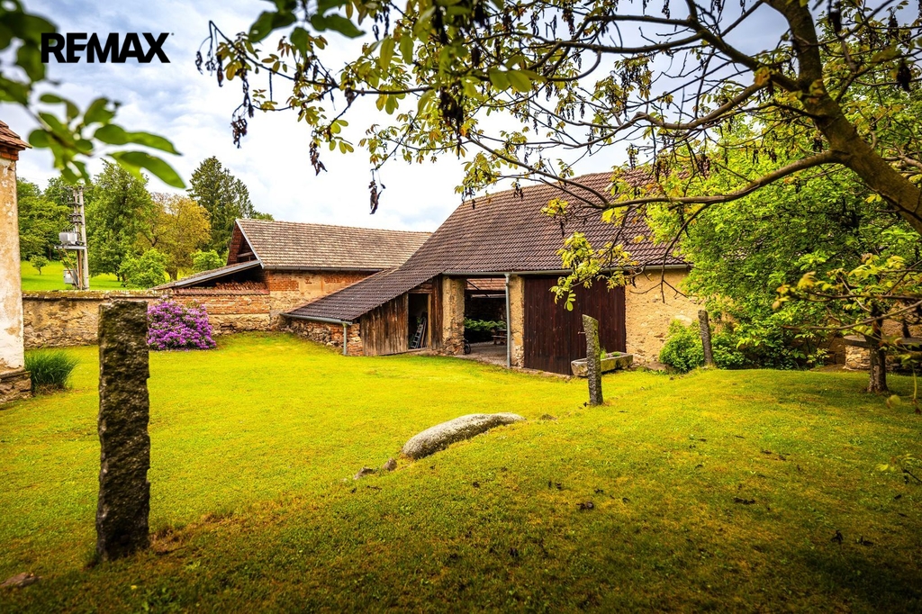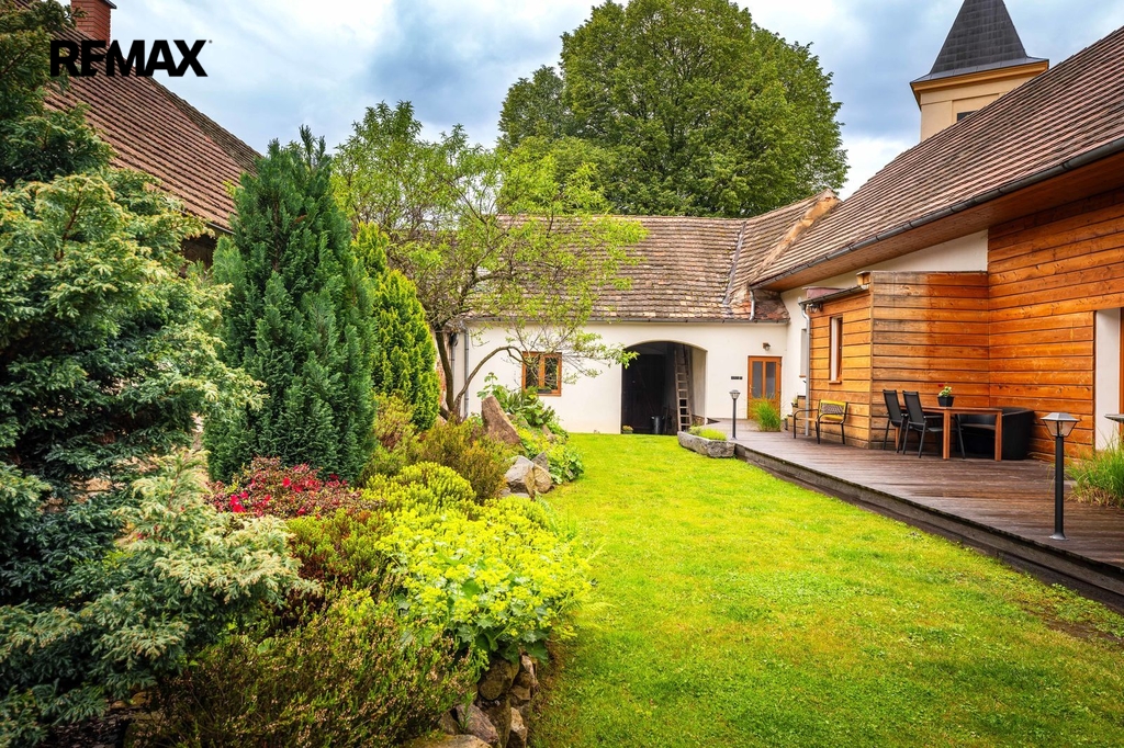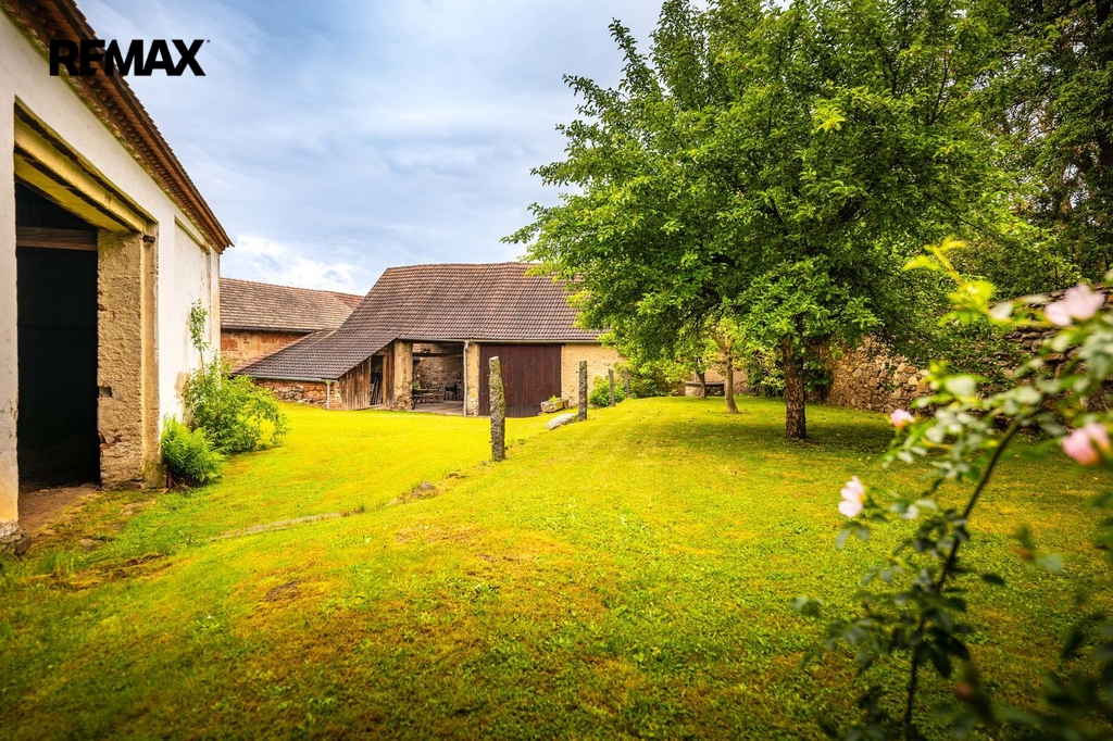 Dům s uzavřeným dvorem z přední i zadní části nabízí maximální soukromí. Dřevěná terasa podél vnitřního dvora k využití a umístění odpočinkové části, grilovací kout s ohništěm, relaxační zóna a skalky. Průjezdnou stodolou se dostanete na zahradu, na kterou je možný druhý vjezd i z hlavní komunikace. Samostatná stodola o výměře 200m2 je evidována jako stavební pozemek, možnost rekonstrukce a oddělení. V případě zájmu možnost prodeje pouze stodoly se zahradou, která je přístupná z obecní komunikace. Odděleno by bylo geometrickým plánem. Dům je možný použít pro účely rodinného bydlení či vícegeneračního bydlení, ale také komerční. Celková výměra pozemku je 1624m2, obytná plocha má výměru 363m2, plocha stodol a technických místností je 408m2.