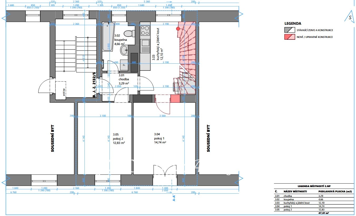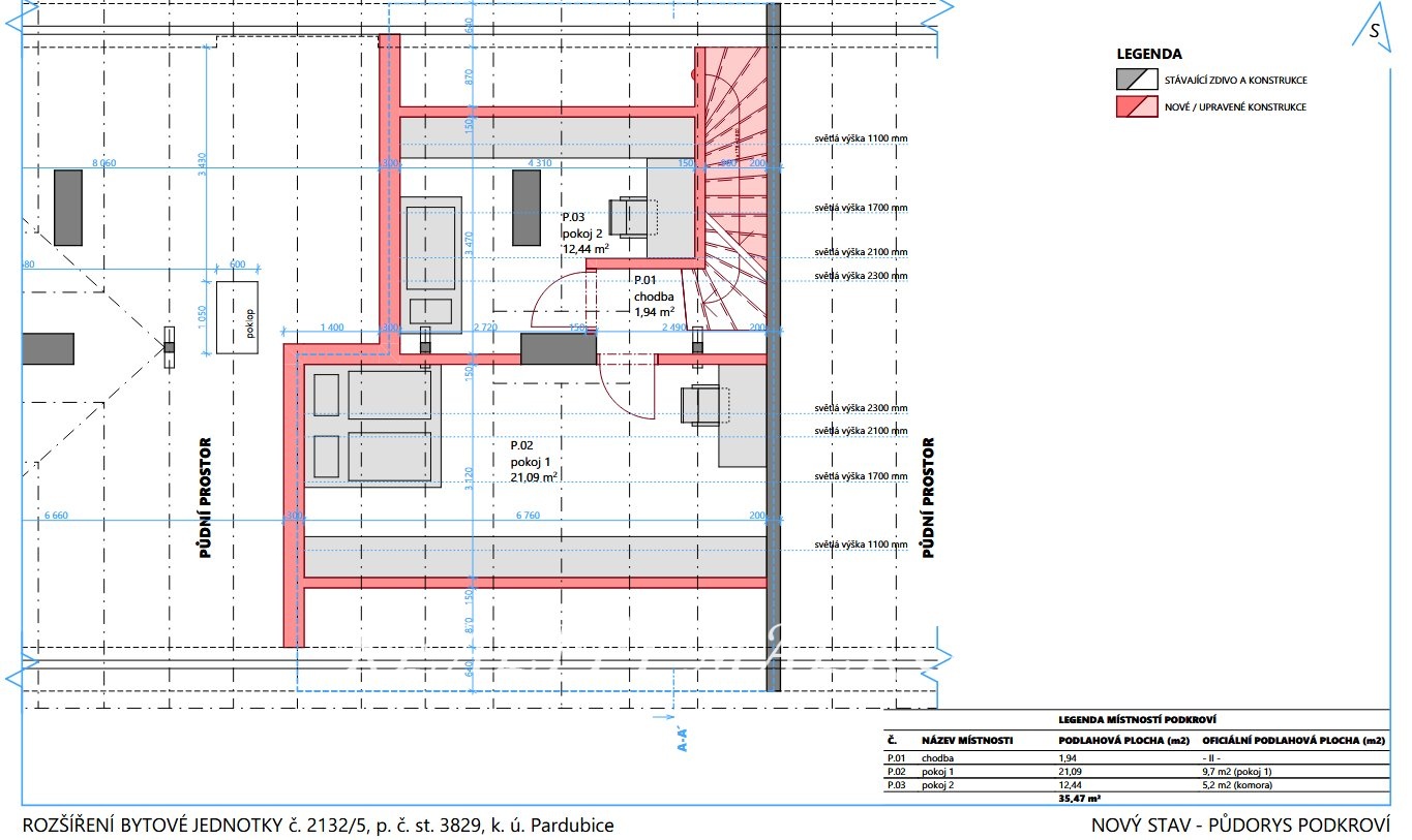 V případě zájmu o rozšíření bytové jednotky je možné v tuto chvíli předat zpracovanou studii včetně další potřebné dokumentace.