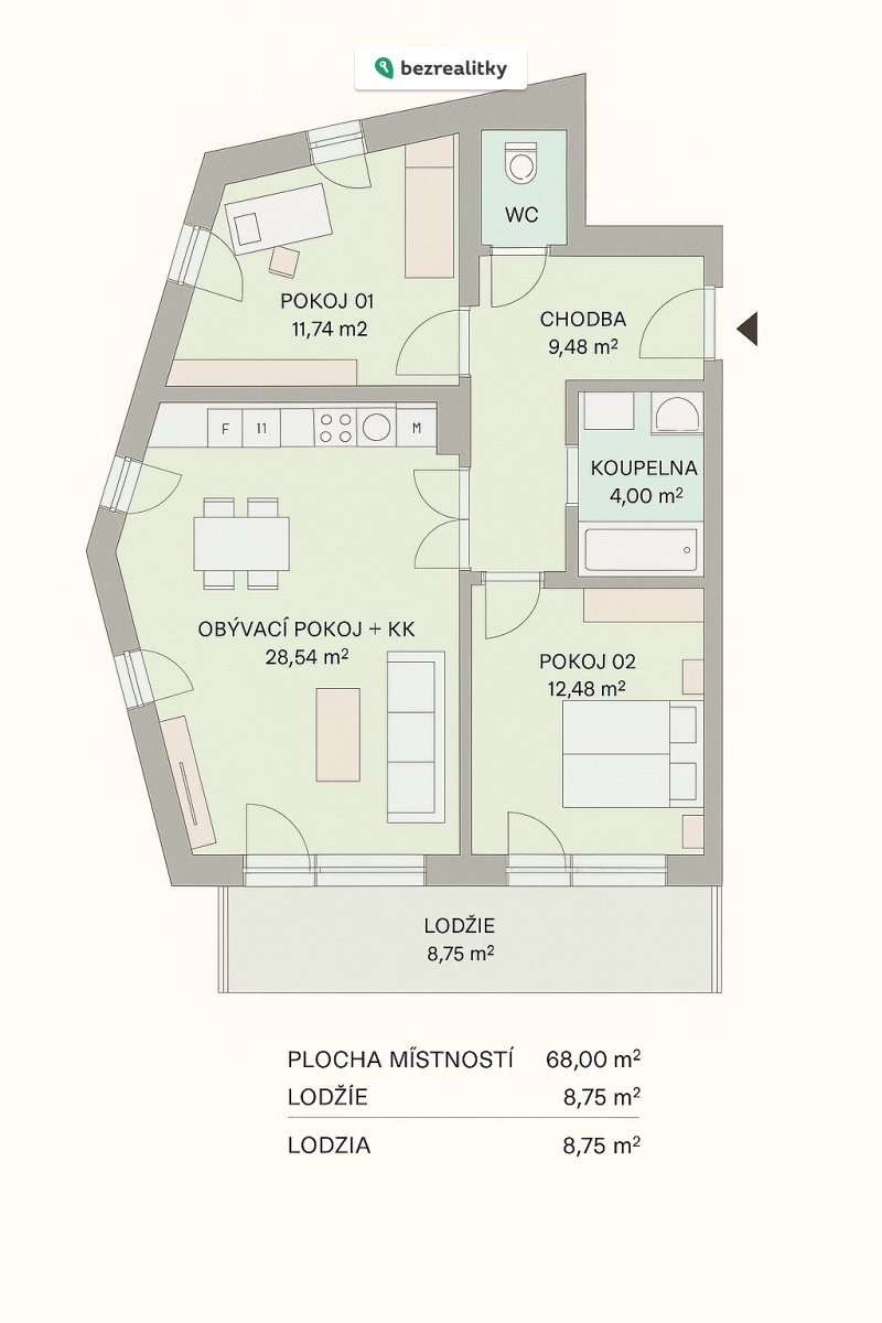 | Dispozice/podlahová plocha: | 3+kk/78 m² |
