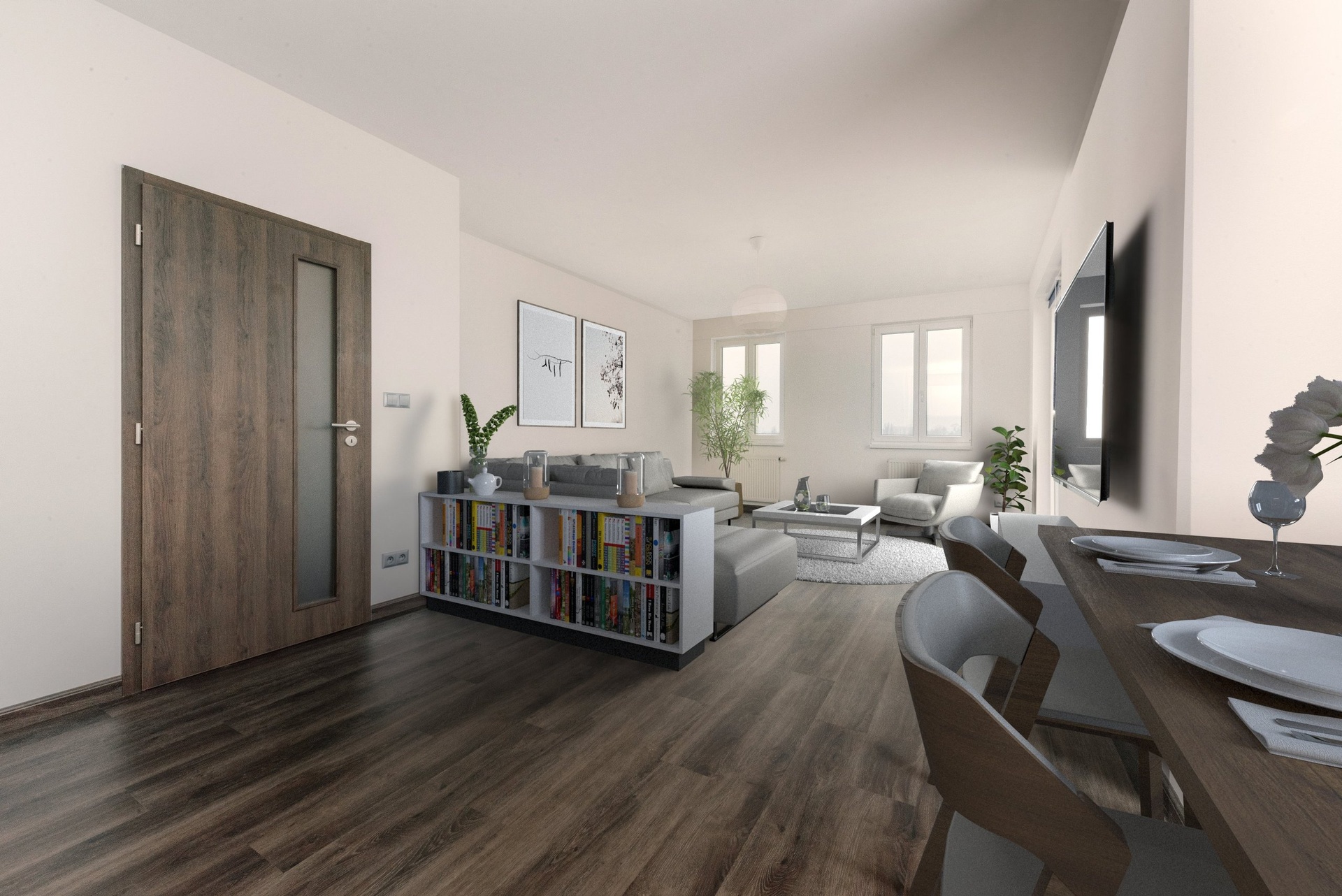 Hlavní obytný prostor, obývací pokoj s kuchyňským koutem o velikosti 37 m2 je orientován na jihovýchod. Díky tomu je po celý den krásně prosvětlený a působí velmi příjemným dojmem. Velkorysá dispozice zajišťuje variabilitu interiéru.