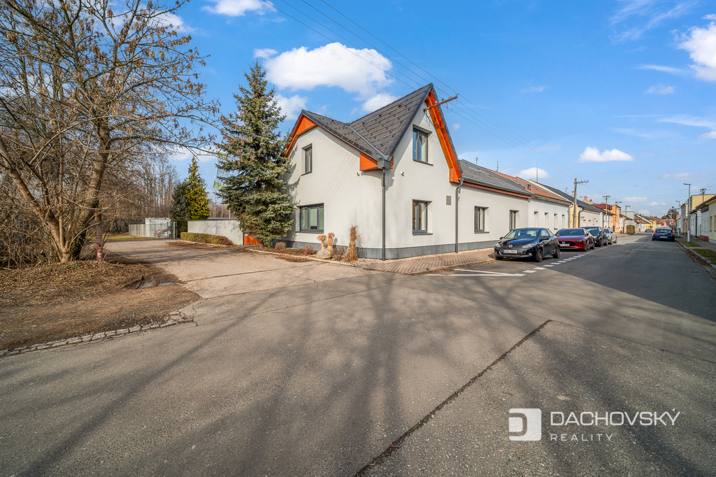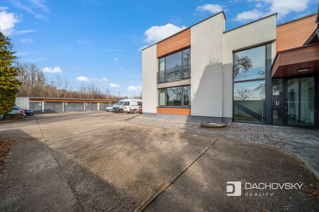 Součástí areálu jsou také skladovací prostory, parkovací místa přímo na vlastním pozemku a garáž.