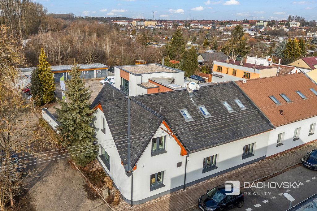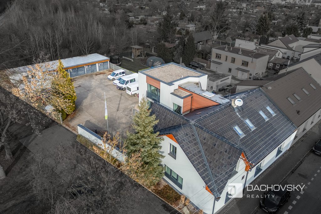 Součástí areálu jsou také skladovací prostory, parkovací místa přímo na vlastním pozemku a garáž.