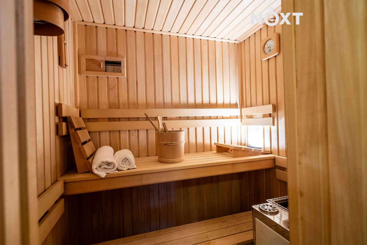 Za chladných večerů si uděláte pohodu u krbu v obýváku a až vás praskot dřeva omrzí, čeká na vás vlastní vyhřátá sauna.