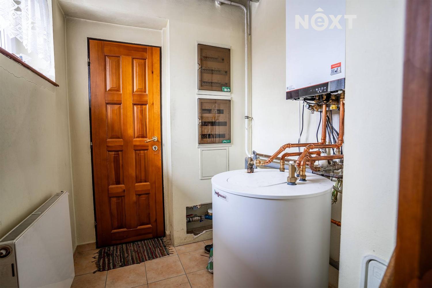 O vytápění se stará plynový kotel s rozvody do radiátorů v pokojích a podlahového topení v koupelně a hale. V obýváku je navíc velký krb, kterým vytopíte celé přízemí.