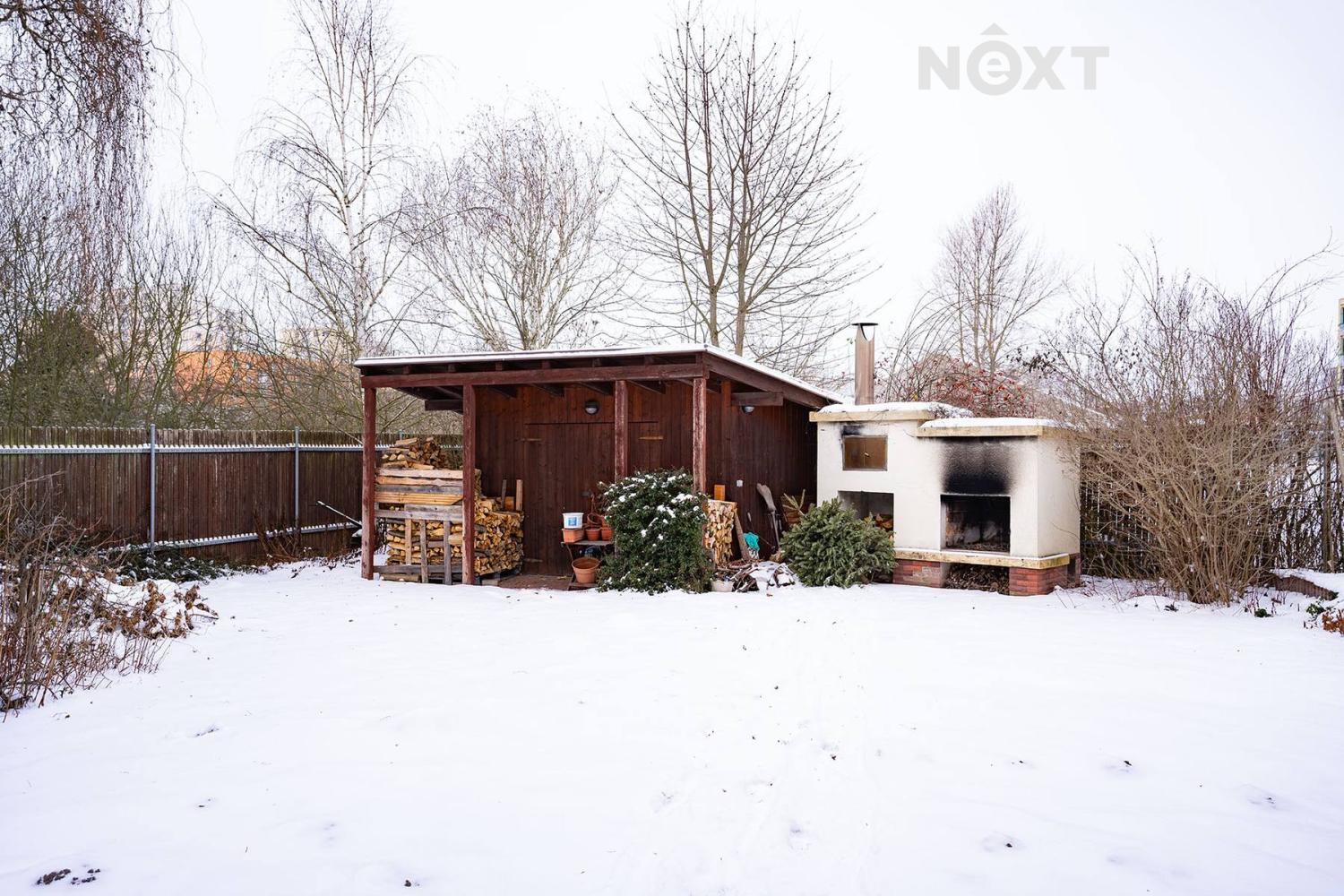 Na zahradě za domem se v létě budete slunit u bazénu, relaxovat na terase nebo sklízet úrodu ze zeleninových záhonů a ovocných stromů. A na večerní grilování s přáteli máte připravený cihlový gril s udírnou.