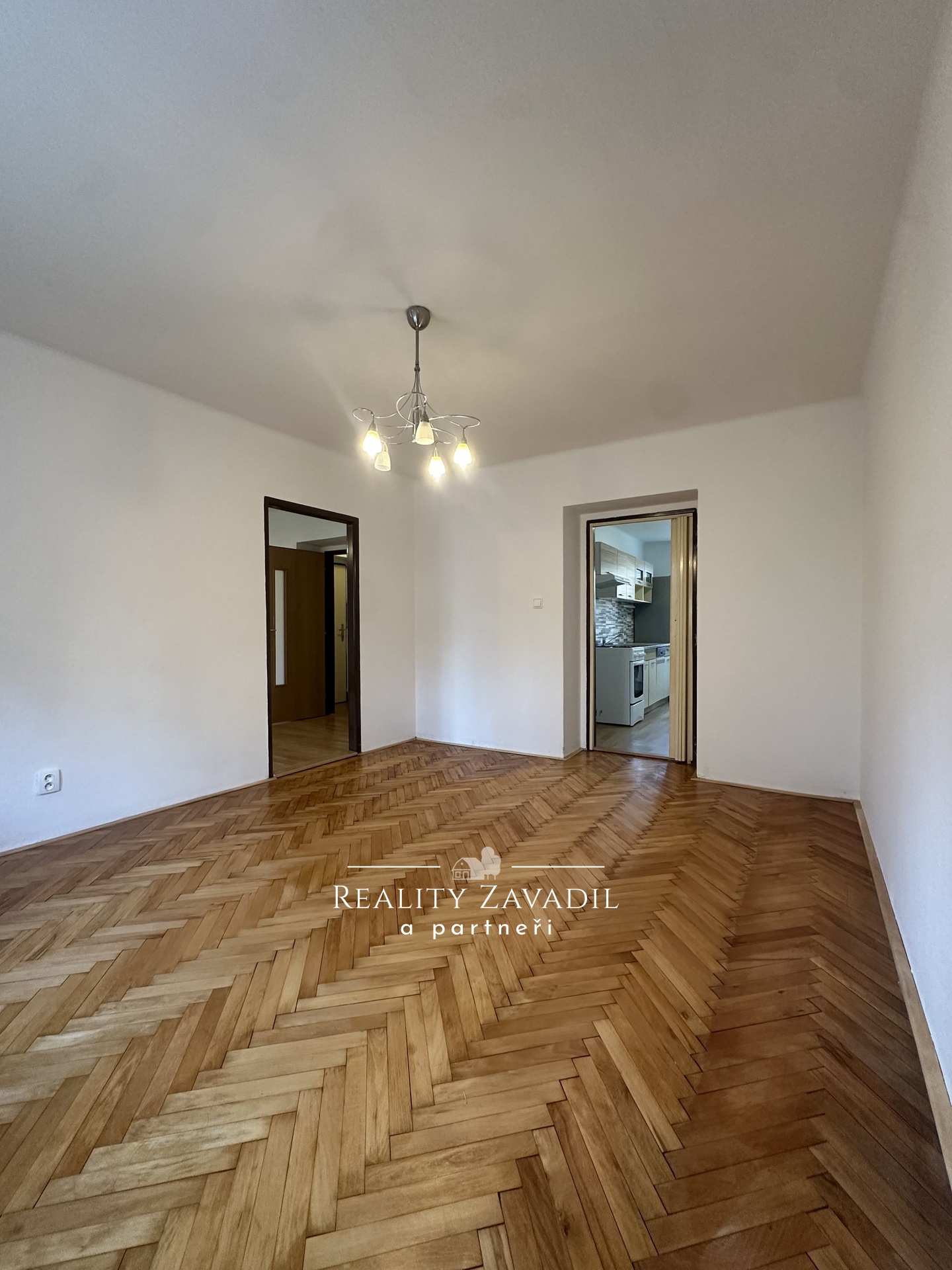 Byt se nachází v udržovaném bytovém domě a je nabízen v částečně vybaveném stavu. Dispoziční řešení se vyznačuje účelností, přičemž centrální část tvoří vstupní chodba, která nezávisle propojuje jednotlivé obytné místnosti. Samostatná kuchyně je vybavena linkou v dřevěném dekoru včetně plynového sporáku, volně stojící chladničky a myčky nádobí. Hlavní obytný pokoj je vyklizený a připravený k vlastnímu zařízení, ve druhé obytné místnosti se nacházejí původní dřevěné parkety. Sociální zařízení je tvořeno koupelnou s vanou, umyvadlem a toaletou, přičemž je kompletně obloženo keramickým obkladem. Praktickým benefitem dispozičního řešení je komora s kovovým regálovým systémem umístěná přímo v bytě, která poskytuje dostatek úložného prostoru.