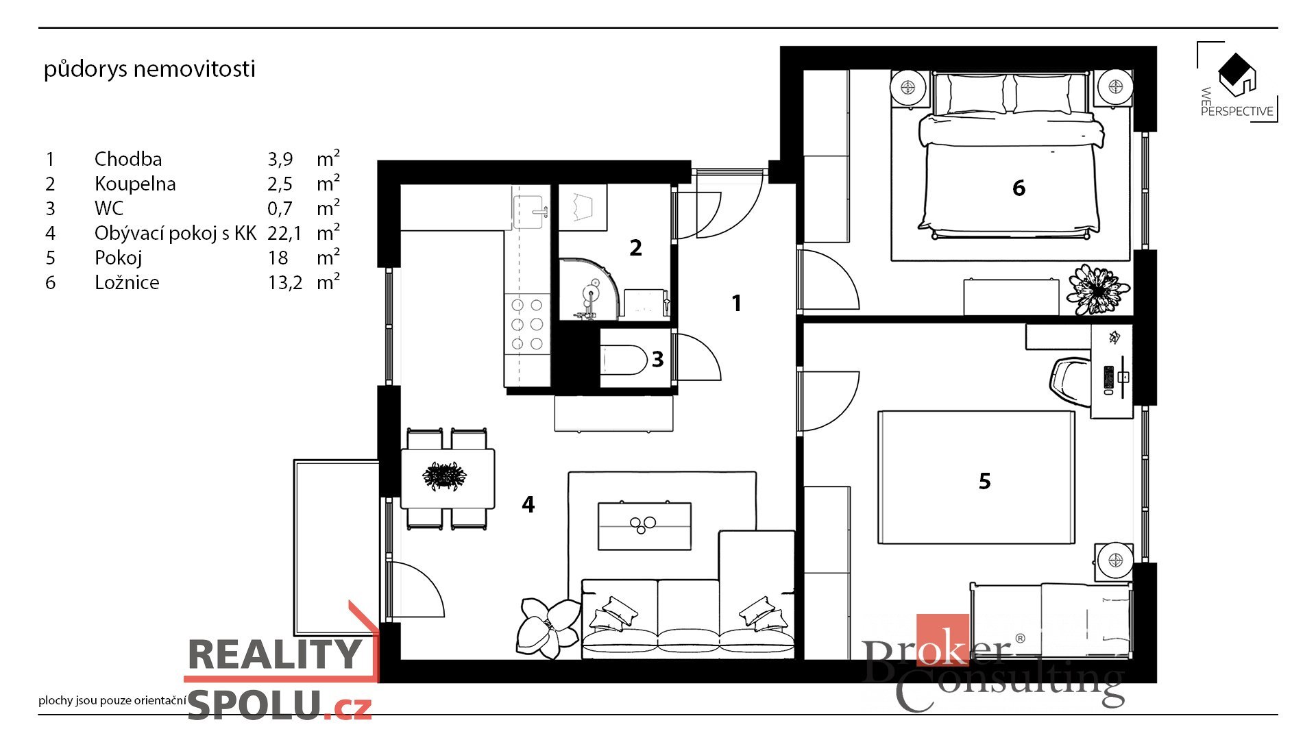 - Celková podlahová plocha: 60 m²