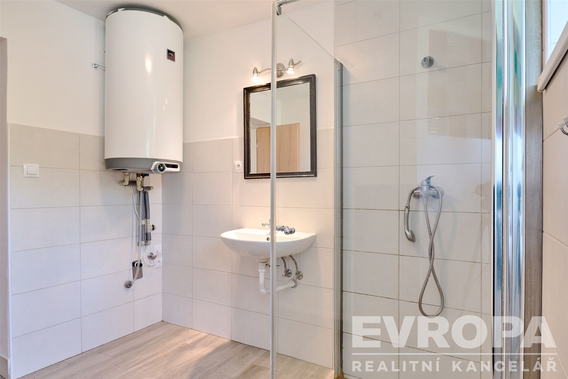 Vybavení: Kuchyň s novými spotřebiči, renovovaná koupelna s moderními obklady a dlažbou.