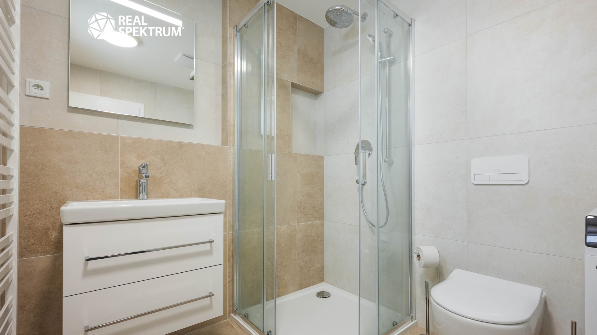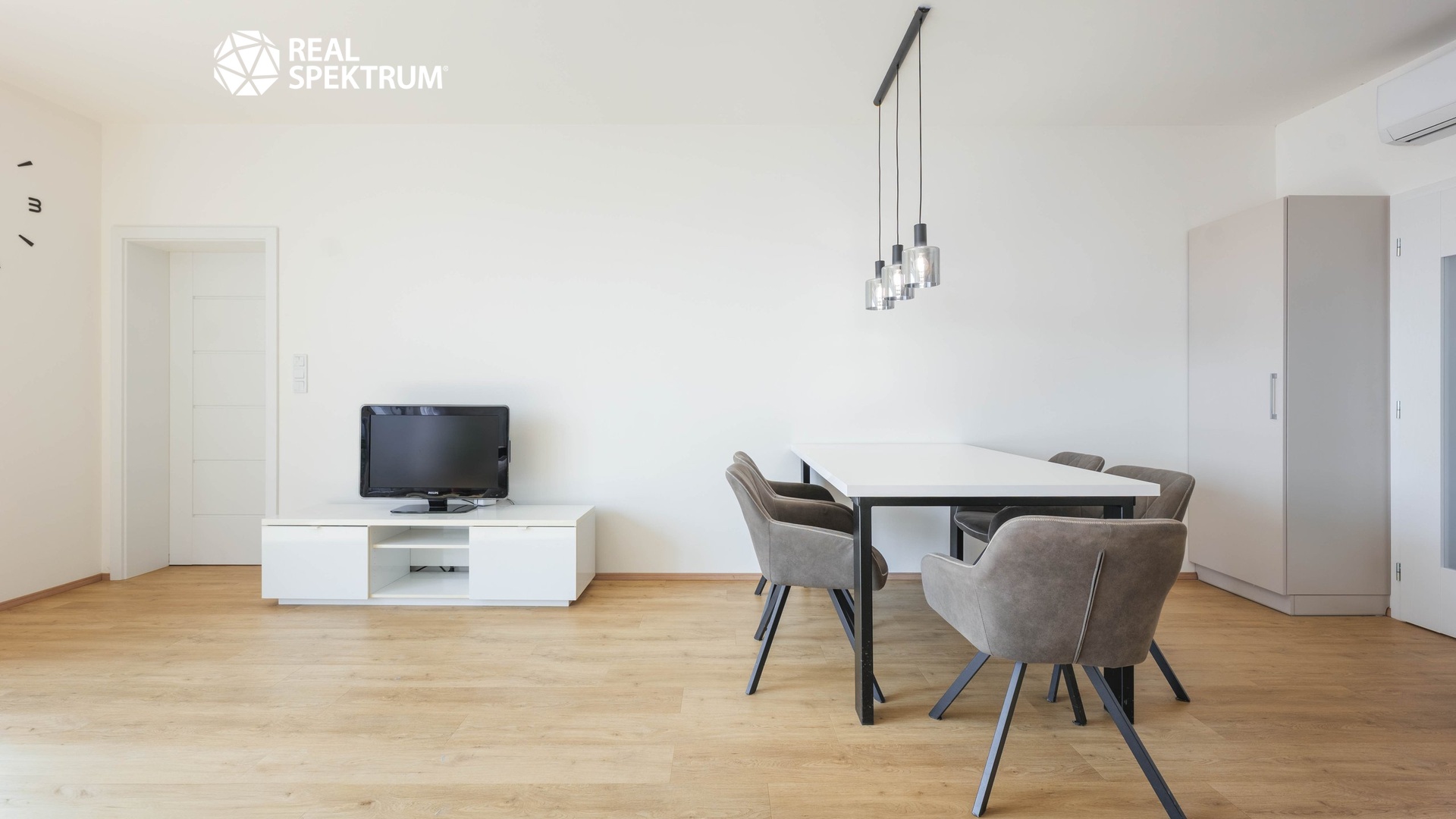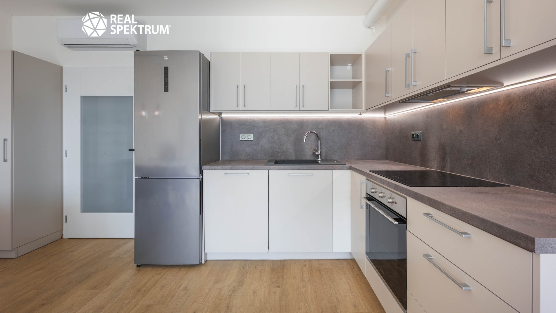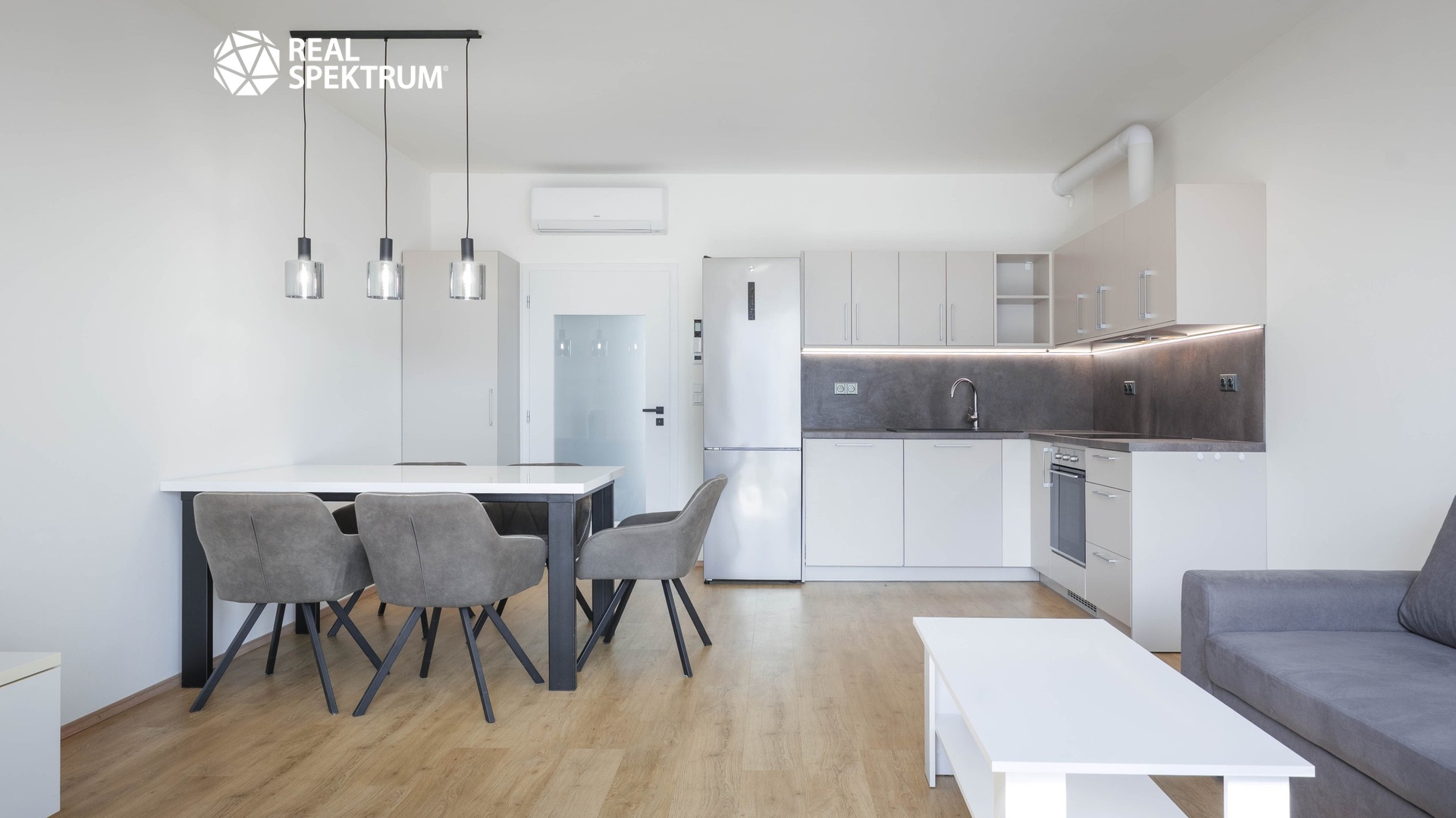 Byt nabízí také dostatek úložného prostoru díky vestavným skříním. Komfort bydlení zvyšují předokenní žaluzie a klimatizace v obytných místnostech.