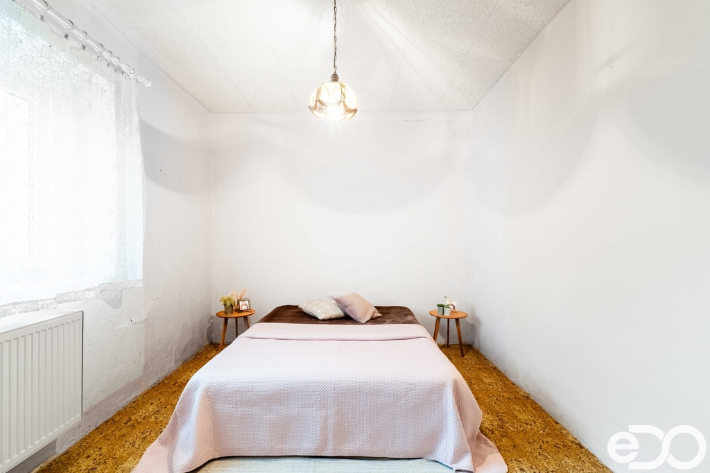 V této klidné části nabízím samostatný rodinný dům 3+1 s užitnou plochou cca 77,9 m², částečným podsklepením a pozemkem o velikosti 404 m². Konstrukce domu kombinuje opuku, kámen a cihlu, střecha prošla obnovou v minulosti. Interiér je určen k rekonstrukci – je vhodné počítat s novými omítkami, rozvody, podlahami i špaletami. Koupelna je funkční, ale starší. Dům byl několik let neobývaný, což se projevilo zvýšenou vlhkostí. Přístup na pozemek je možný z obou ulic, což je praktické při budoucích úpravách. Uvedené výměry jsou orientační.