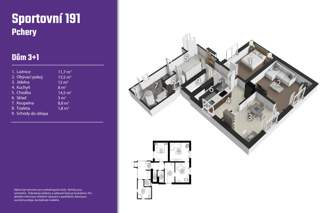 Prodej rodinného domu 78 m2, s pozemkem 404 m2, Pchery