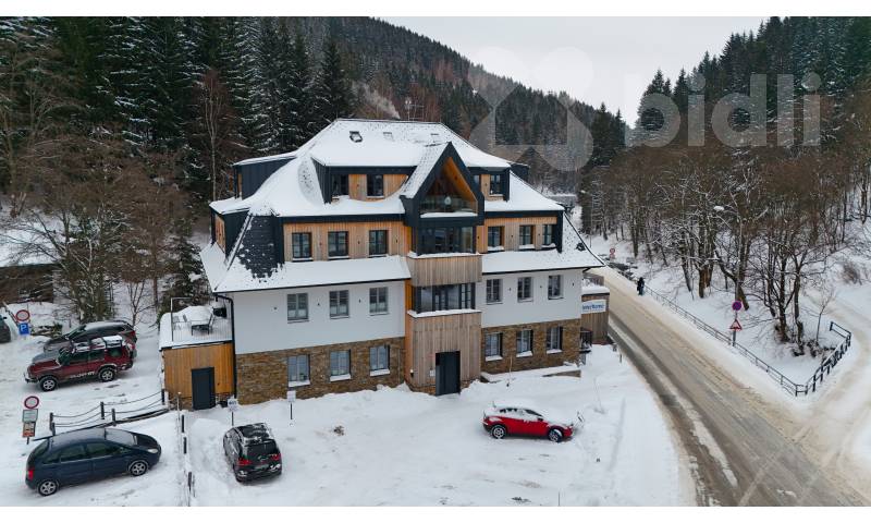 Apartmán je prakticky řešený a nabízí dostatek prostoru pro pohodlné bydlení i víkendové pobyty. Součástí jednotky je terasa, která zve k posezení s výhledem do horského prostředí, dále sklep pro uložení sportovního vybavení a parkovací stání přímo u domu, což je v této lokalitě velkou výhodou.