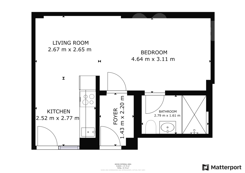| Dispozice/podlahová plocha: | 1+kk/36 m² |