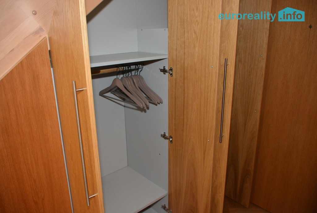 V horním patře apartmánu je ložnice se čtyřmi lůžky, patra jsou spojená dřevěným schodištěm, pod kterým je vestavěná skříň s velkým úložným prostorem.