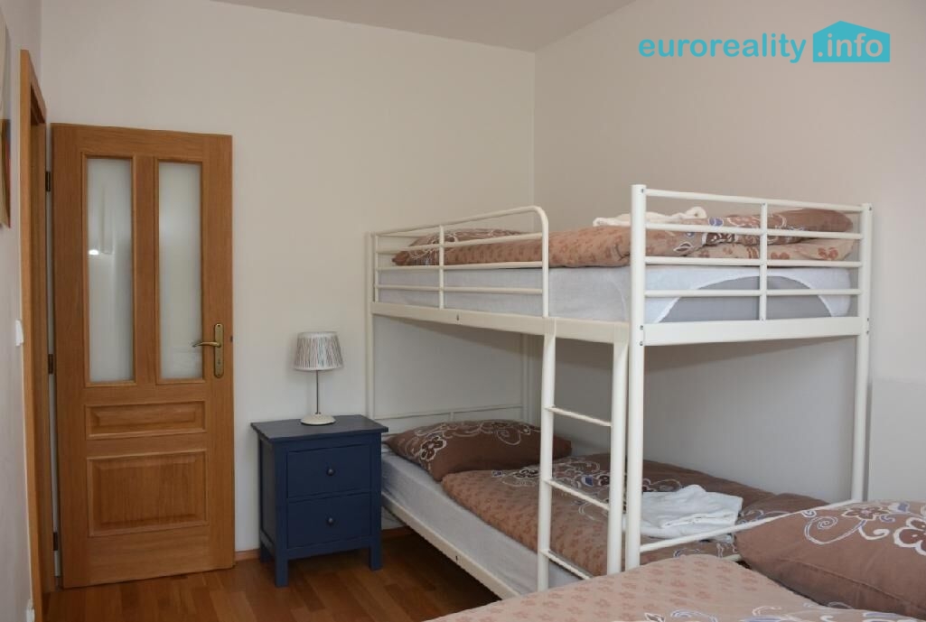 V horním patře apartmánu je ložnice se čtyřmi lůžky, patra jsou spojená dřevěným schodištěm, pod kterým je vestavěná skříň s velkým úložným prostorem.