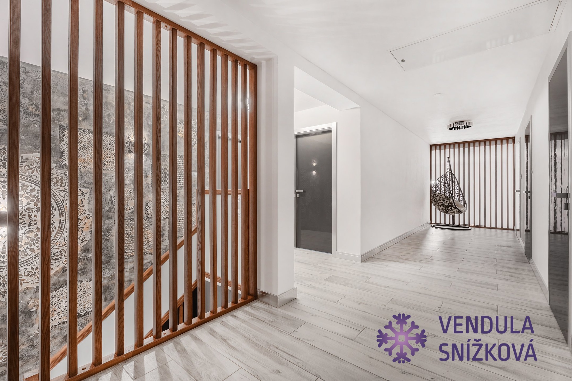 Vkusná, útulná a zároveň velkorysá stavba nabízí rozlehlý pozemek, kryté parkování, ale především vnitřní wellness zónu – vyhřívaný bazén, vířivku a saunu. Vše je promyšleno do posledního detailu.