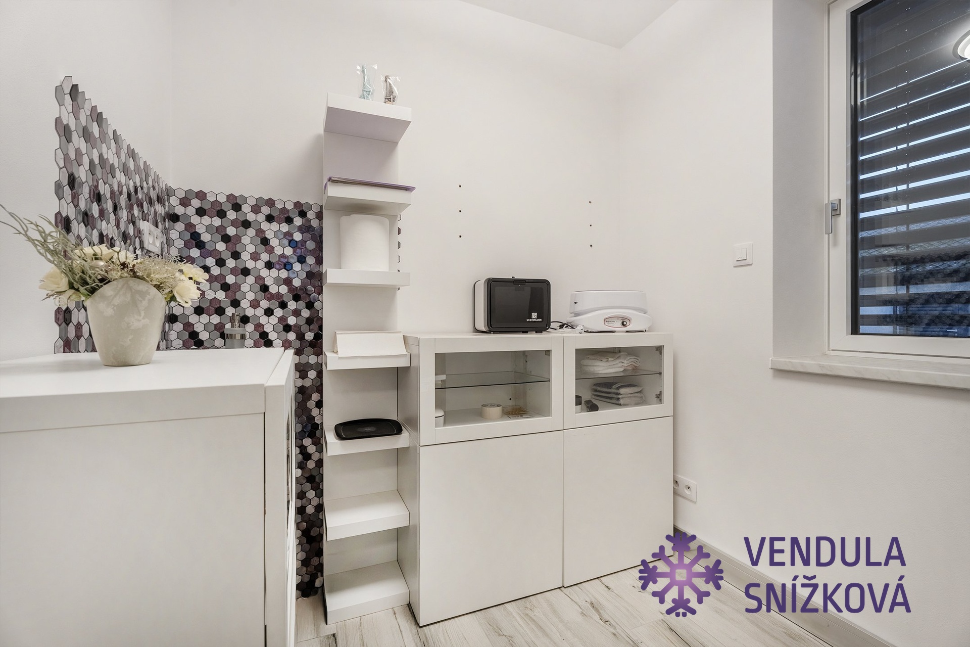 V domě je připravené samostatné studio vhodné pro manikúru, pedikúru či jiný podnikatelský záměr. Po drobných úpravách lze nemovitost využít také jako pronájem či stylový penzion.