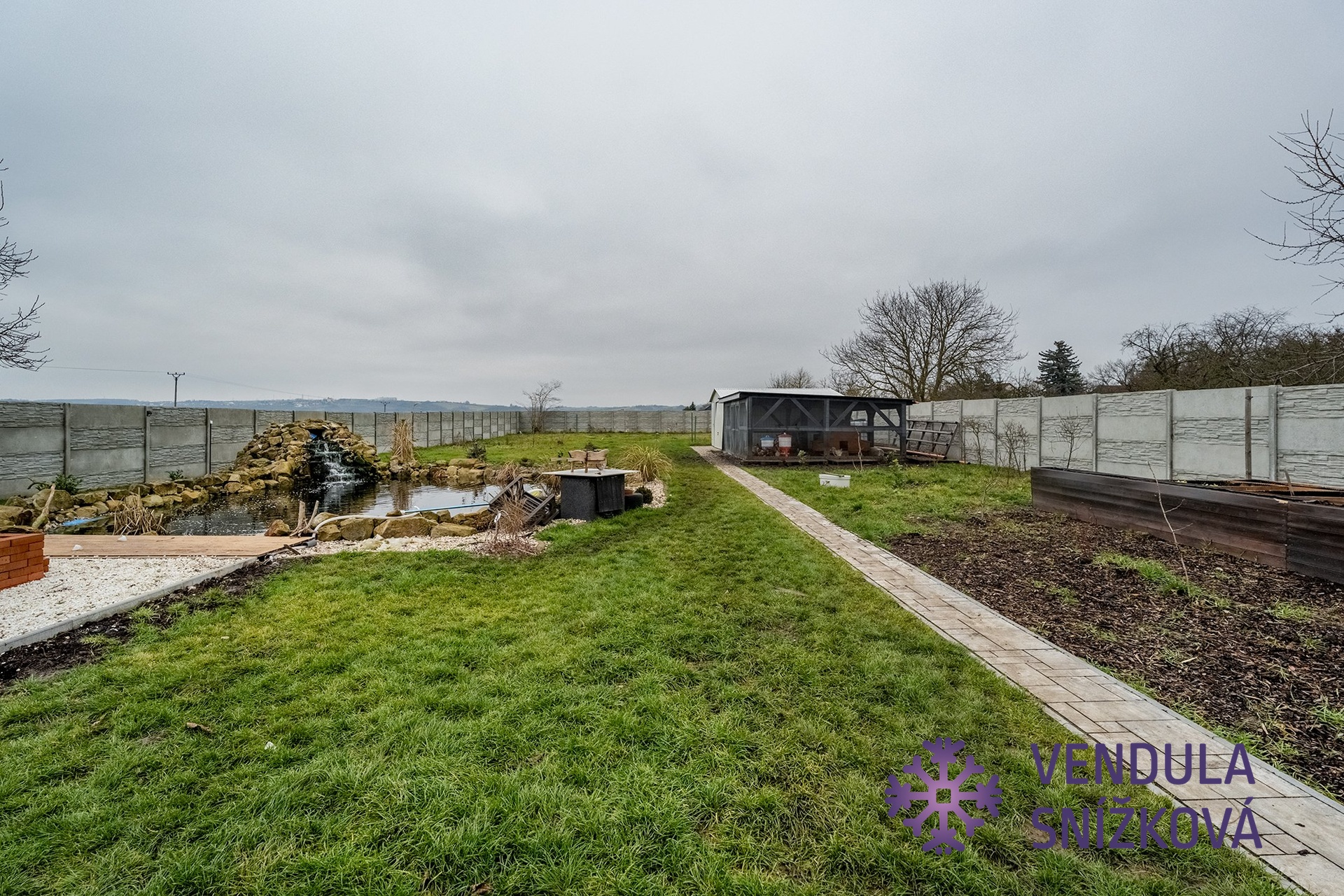 Součástí je také rozlehlá zahrada s chovným jezírkem, vodopádem, altánem s udírnou a dostatkem soukromí.