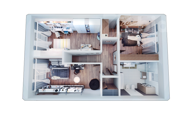 V přízemí se nachází garáž a hlavní obytná zóna - srdce domu - tedy kuchyňský kout propojený s velkorysým obývacím prostorem o výměře 42 m2. V patře následně klidová část, tedy 3 pokoje, koupelna se sprchovým koutem i vanou a dostatek úložného prostoru. Velká okna přinášejí do interiéru příjemné světlo a umožňují přímý vstup na soukromou zahradu o rozloze 212 m2. Ta je jako stvořená pro víkendová grilování, dětské hry nebo klidné večery pod širým nebem.