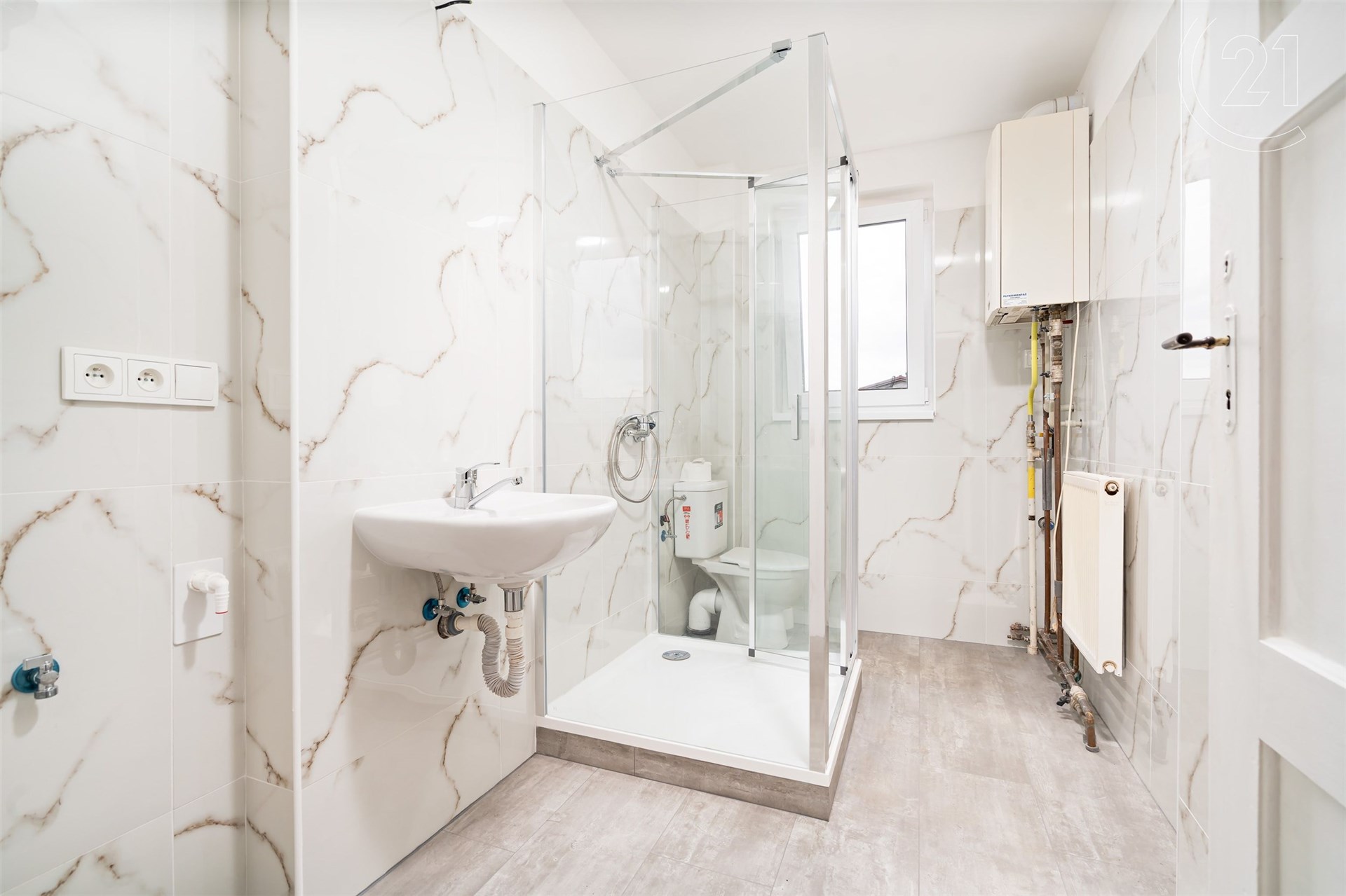 Pak mám pro Vás pronájem nově rekonstruovaného bytu o dispozici 3+kk ve druhém nadzemním podlaží domu, ve kterém se nacházejí jen dva byty, což zajišťuje příjemné bydlení s jen jedním sousedem. Velkou výhodou je dále možnost využívání zahrady domu k odpočinku.
