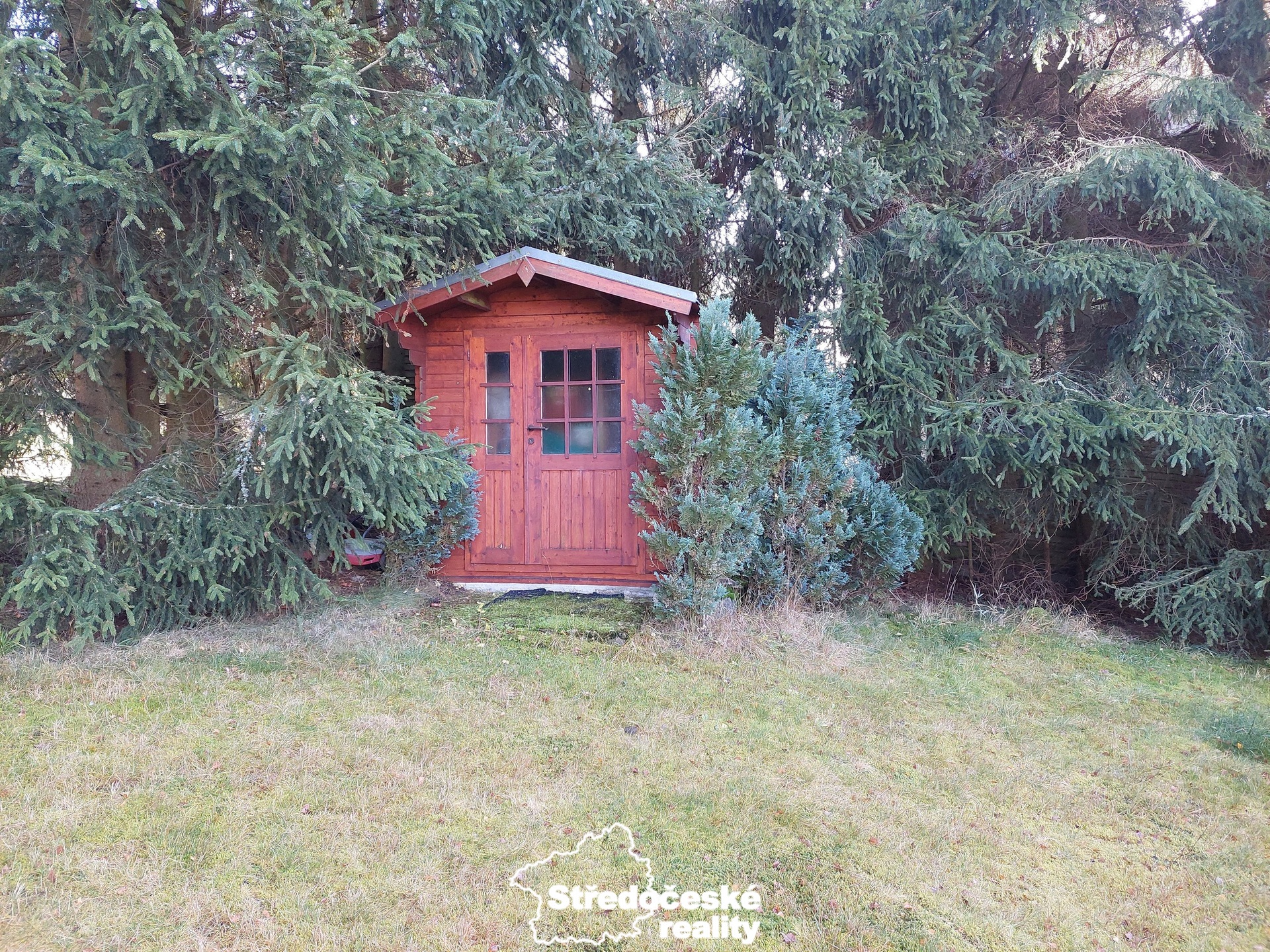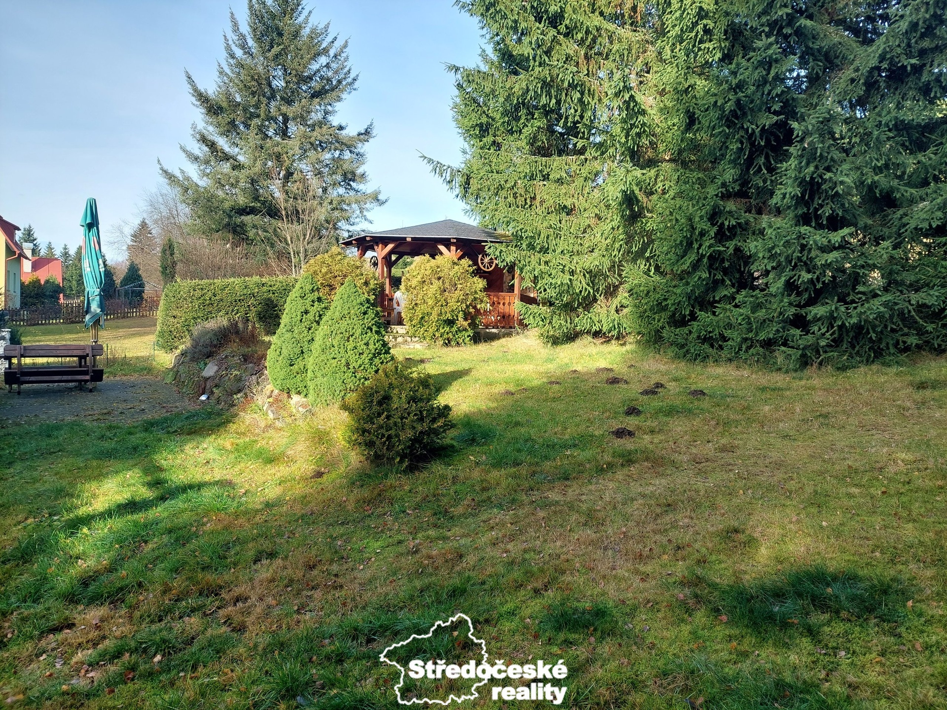 K nemovitosti patří pozemek, který nabízí parkování až pro 12 aut, zahradní altán s grilem a zahradní domek.