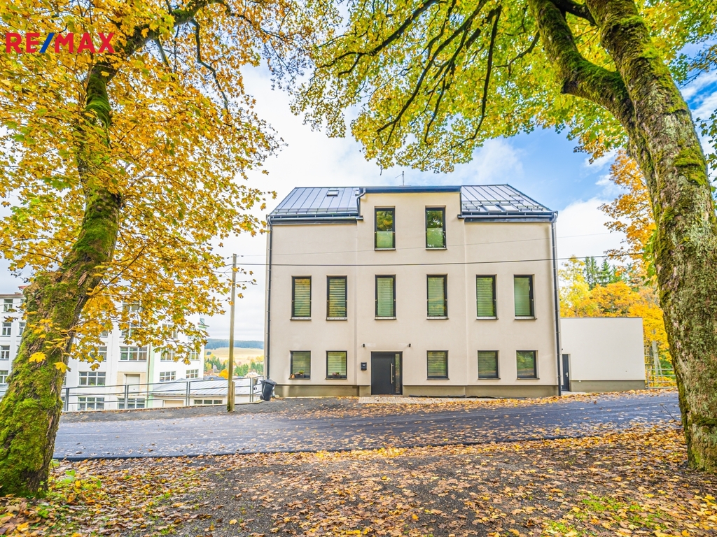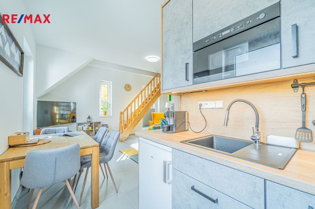 Ve výhradním zastoupení majitele nabízím krásný mezonetový byt o dispozici 2+KK, 67 m2 ve druhém (třetím nadzemním) podlaží v Nádražní ulici v Perninku. Celý dům prošel celkovou rekonstrukcí v roce 2022. Vše je nové a moderní. Dům je zateplený, plastová okna se žaluziemi, nové rozvody, plechová střecha, tepelné čerpadlo, vlastní bojler pro ohřev teplé vody, sušárna na boty (přeskáče) a lyžárna jsou v 1. podzemním podlaží.