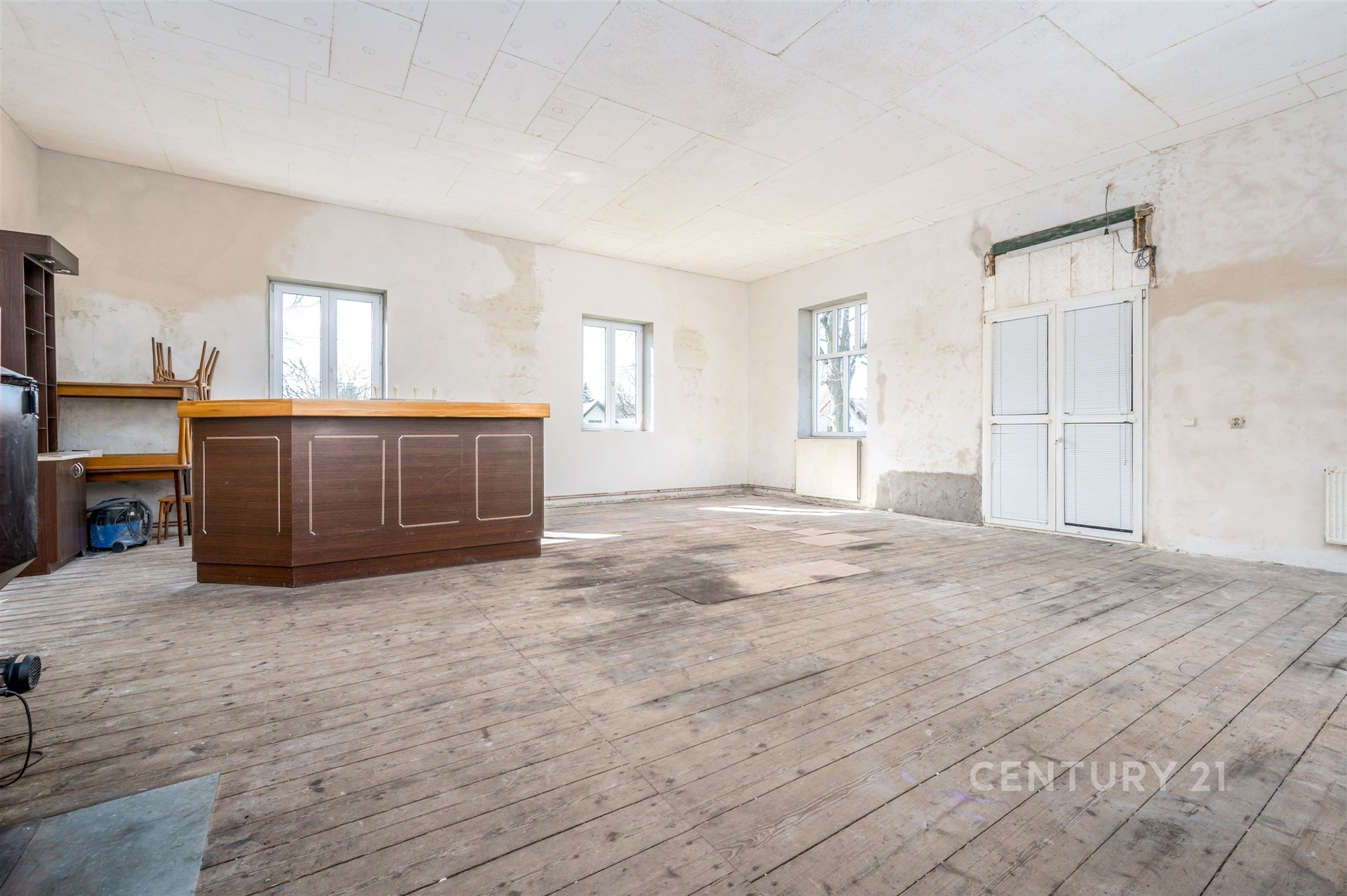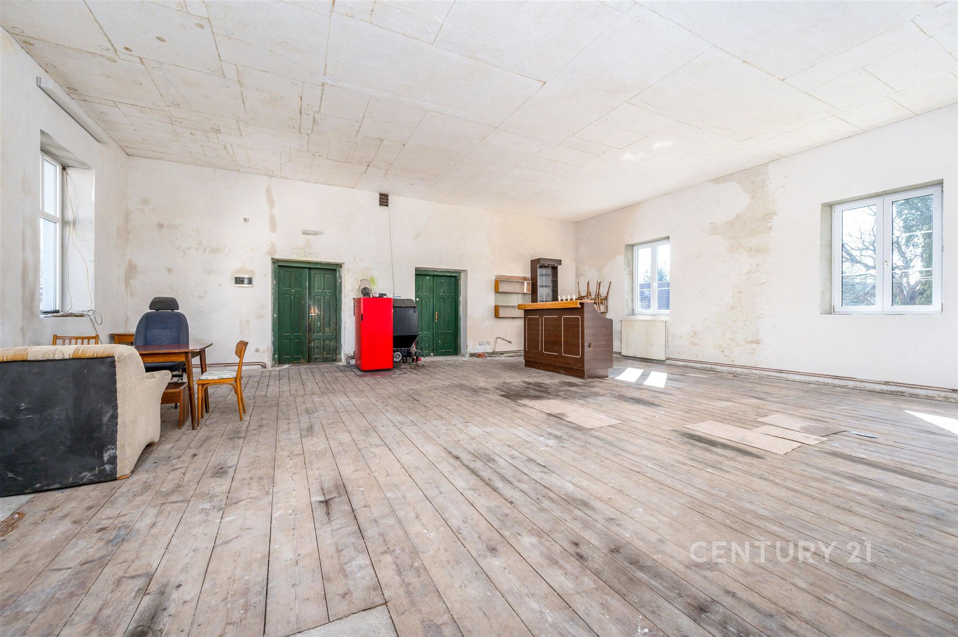 Dům má zajímavou minulost – dříve sloužil jako vesnická restaurace. Díky tomu se zde nachází jedna opravdu nadstandardní místnost s velkorysou výměrou, která dává novému majiteli naprostou volnost v jejím využití. Tento prostor lze ponechat v jeho současné otevřené podobě jako dominantní, nádherný obytný prostor s vysokými stropy a vzdušností. Stejně tak je ale možné místnost rozdělit na více menších pokojů, čímž se rozšíří celková dispozice domu. Fantazii se meze nekladou – lze zde vytvořit například luxusní obývací pokoj propojený s kuchyní, velkou pracovnu, ateliér, hernu pro děti nebo cokoliv jiného, co bude odpovídat životnímu stylu nových majitelů.