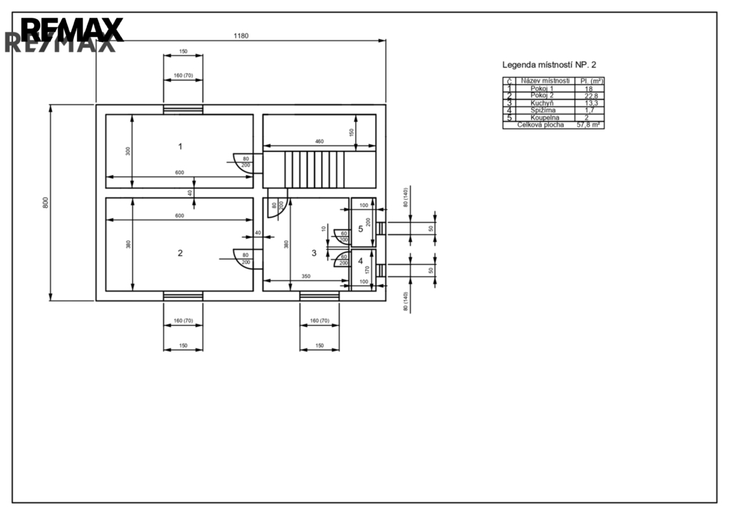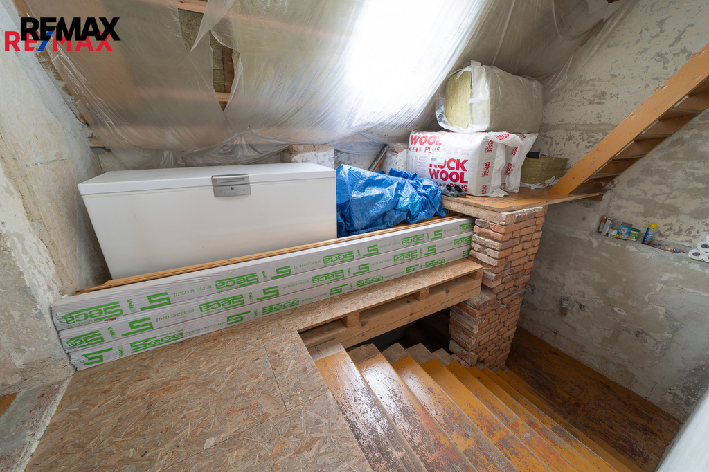 Ve druhém patře je započatá rekonstrukce, která nabízí možnost vybudování samostatné bytové jednotky s dispozicí pokojů 2+1 nebo 3kk.