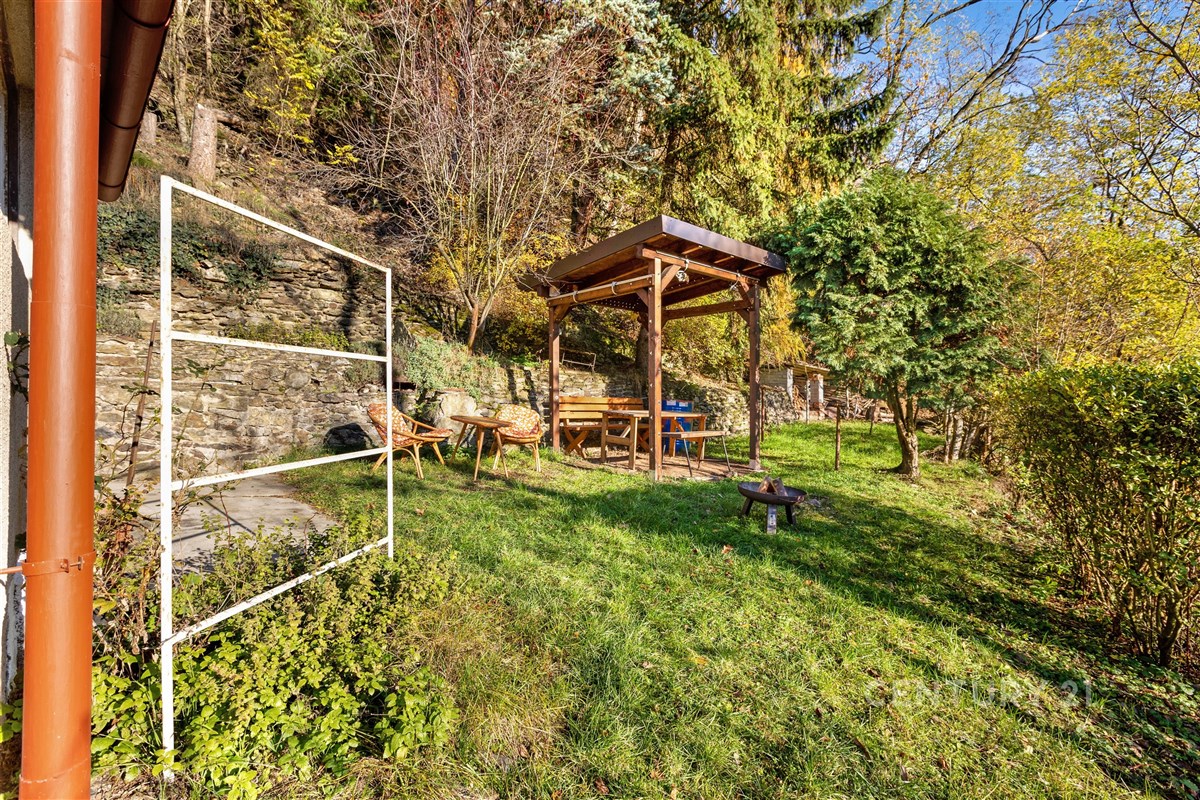 Na udržovaném pozemku, který je pronajatý od obce (3 945 Kč/rok), se nachází nová dřevěná pergola o rozměru 2 × 2 metry, vybudovaná před dvěma lety s osvětlením a možností zakrytí, které zajišťuje komfort i za nepříznivého počasí. Dále zde stojí venkovní toaleta typu suché WC, kamenný sklípek ve svahu, vhodný pro uskladnění potravin či nápojů, a také dřevěná kůlna určená pro uskladnění nářadí, kol nebo sportovního vybavení. Pozemek je pravidelně udržovaný a díky okolní zeleni nabízí příjemná zákoutí pro posezení i volnočasové aktivity.