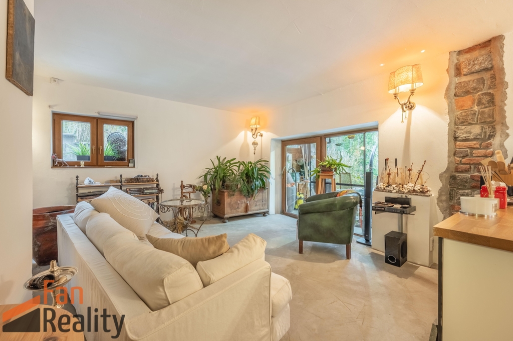 Prostorný ateliér v suterénu je ideálním místem pro kreativní činnosti, nebo práci z domova, na který navazuje venkovní částečně kryté posezení, kde si vychutnáte slunečné dny při pohledu na upravenou zahradu se vzrostlou zelení, ale i výhledy do širšího okolí.