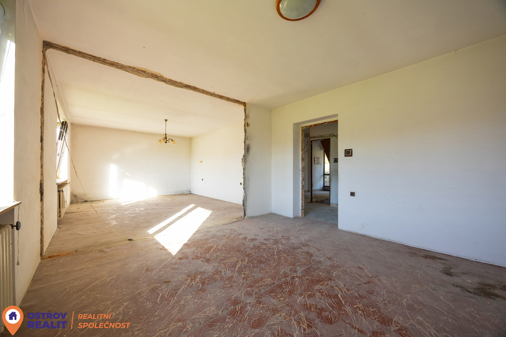Dům je ve fázi započaté rekonstrukce – byly odstraněny vnitřní příčky a otevřeny obytné prostory, což dává naprostou svobodu v návrhu nové dispozice.