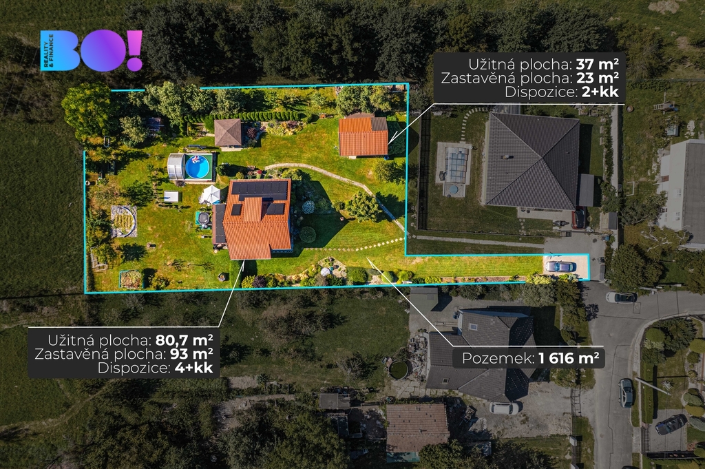 - Plocha parcely: 1616 m²