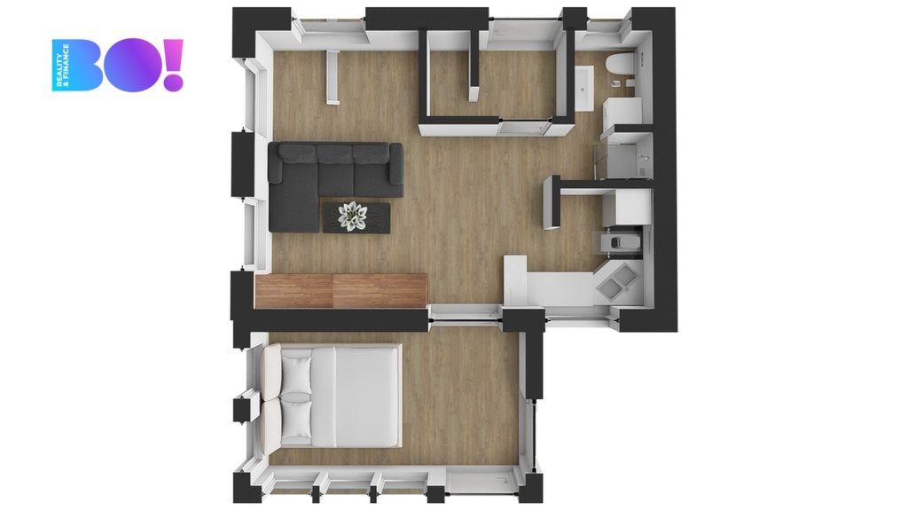 Dispozice malého domku: 2+kk Užit. pl.: 37 m².