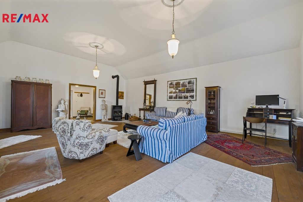 Dispozice domu: První bytová jednotka se nachází v původní historické části celé nemovitosti a skládá se z prostorné kuchyně, velikého obývacího pokoje, ložnice, koupelny s WC a samostatného WC. Druhá bytová jednotka se skládá z obytného pokoje spojeného s kuchyní, ložnice a koupelny s WC. Obě bytové jednotky mají samostatný vstup z uzavřeného dvora, ale jsou též propojeny společnou stodolou, ve které se nachází kotelna. Nemovitost se prodává s kompletním vybavením.