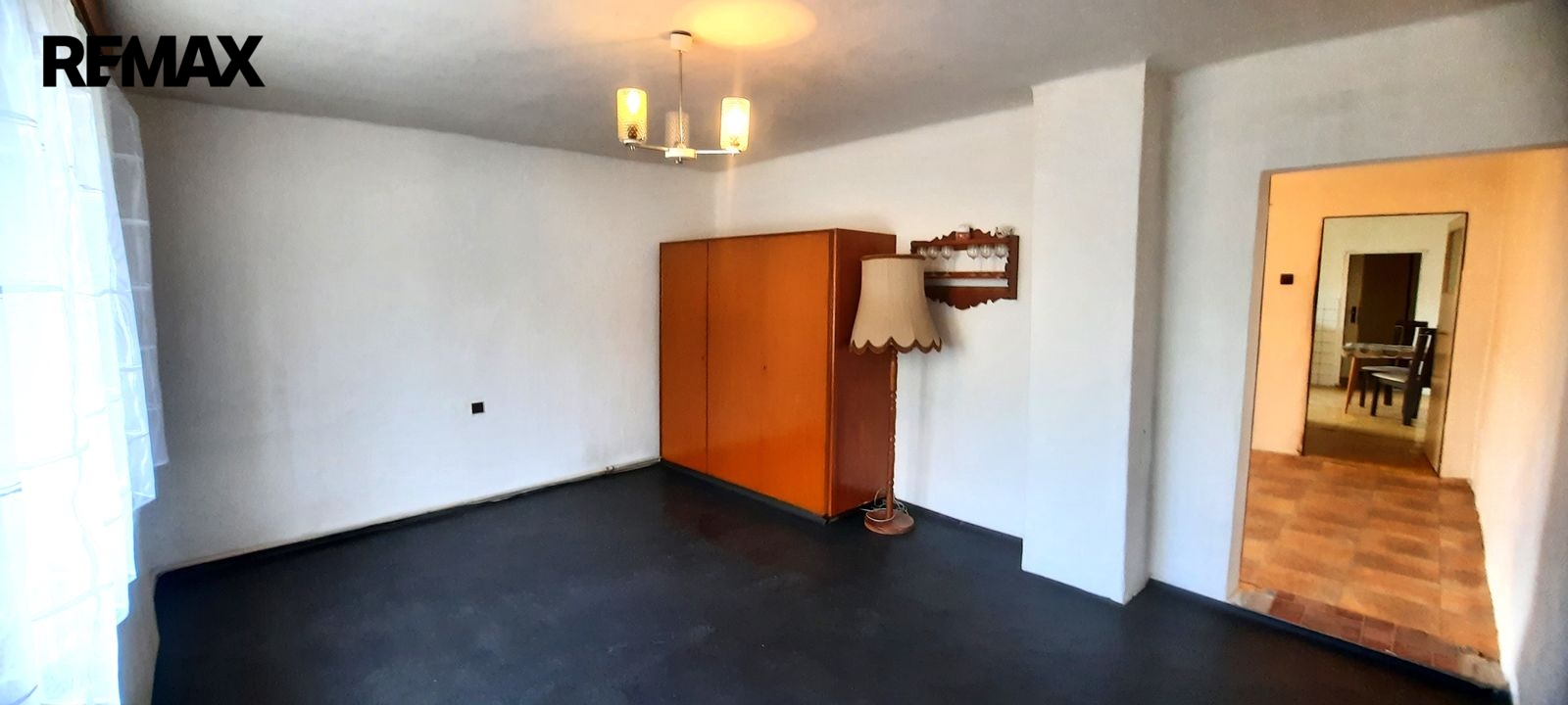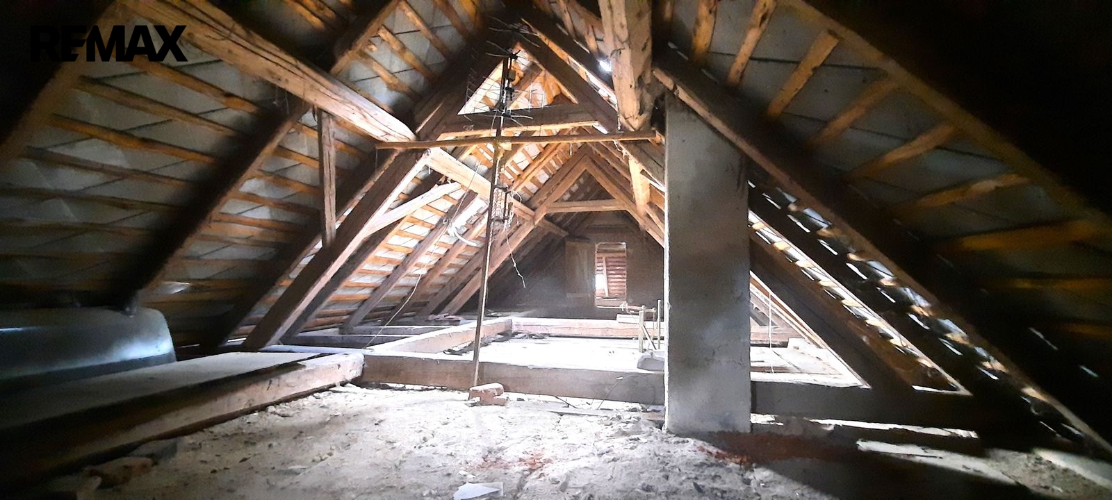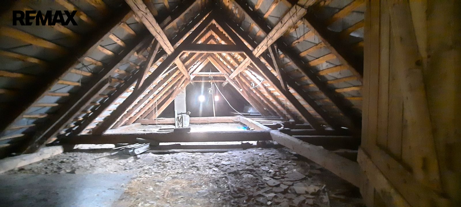 Dispozice: do domu se vchází prosklenou terasou, která vede až ke stodole za domem. Do samotné obytné části domu se z terasy vchází vpravo přes malou chodbičku přímo do kuchyně. Vlevo vedle kuchyně je spíž a dále koupelna s vanou, WC a kotlem na tuhá paliva. Vpravo vedle kuchyně se nachází první místnost, za kterou se směrem do ulice vchází do druhé místnosti. Terasou rovně se dostaneme do stodoly, za kterou se nachází zahrada a vnější menší sklep. Vedle stodoly stojí malá kůlna. Poměrně prostorná půda nabízí možnost půdní vestavby o minimálně dvou pokojích. Nemovitost je ve stavu před kompletní rekonstrukcí.