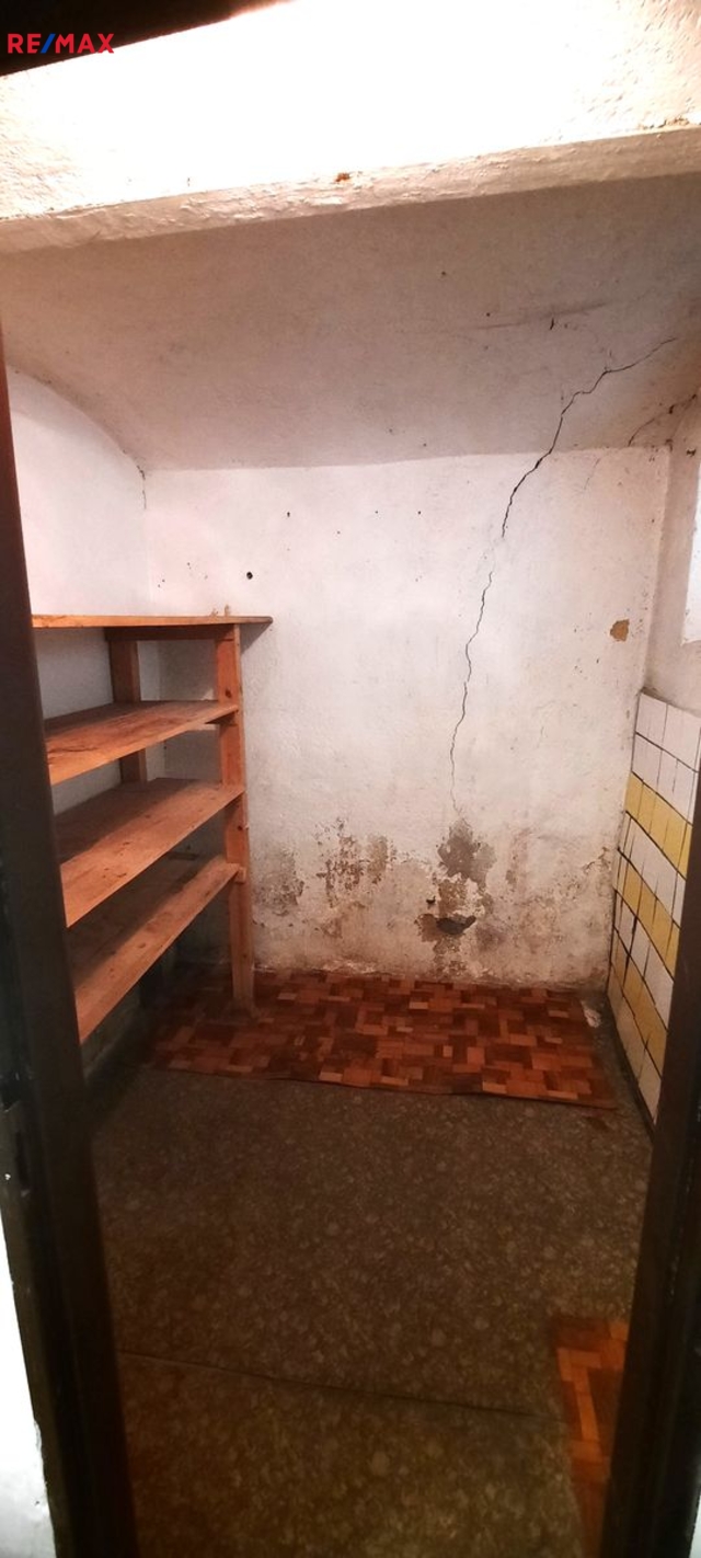 Dispozice: do domu se vchází prosklenou terasou, která vede až ke stodole za domem. Do samotné obytné části domu se z terasy vchází vpravo přes malou chodbičku přímo do kuchyně. Vlevo vedle kuchyně je spíž a dále koupelna s vanou, WC a kotlem na tuhá paliva. Vpravo vedle kuchyně se nachází první místnost, za kterou se směrem do ulice vchází do druhé místnosti. Terasou rovně se dostaneme do stodoly, za kterou se nachází zahrada a vnější menší sklep. Vedle stodoly stojí malá kůlna. Poměrně prostorná půda nabízí možnost půdní vestavby o minimálně dvou pokojích. Nemovitost je ve stavu před kompletní rekonstrukcí.