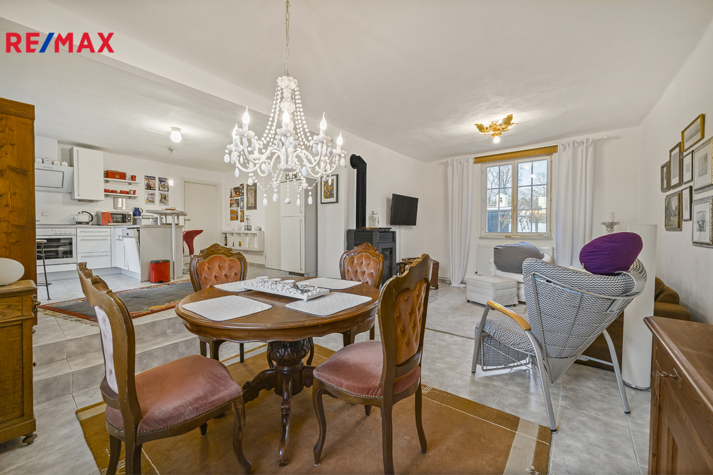 Dispozice domu: První bytová jednotka se nachází v původní historické části celé nemovitosti a skládá se z prostorné kuchyně, velikého obývacího pokoje, ložnice, koupelny s WC a samostatného WC. Druhá bytová jednotka se skládá z obytného pokoje spojeného s kuchyní, ložnice a koupelny s WC. Obě bytové jednotky mají samostatný vstup z uzavřeného dvora, ale jsou též propojeny společnou stodolou, ve které se nachází kotelna. Nemovitost se prodává s kompletním vybavením.